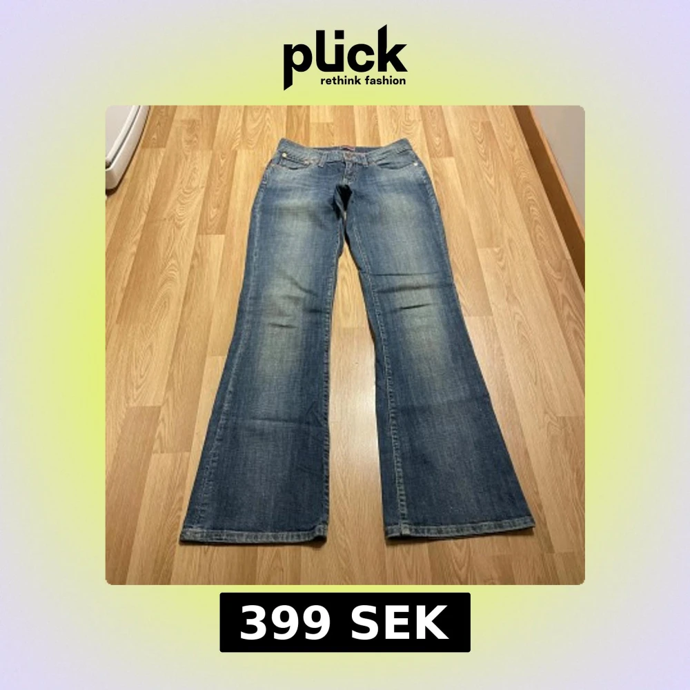 (27) Lågmidjade bootcut jeans med snygg unik tvätt och i stretchiga material. Midjemått rakt över: 35cm, innerbenslängd: 81 cm💕