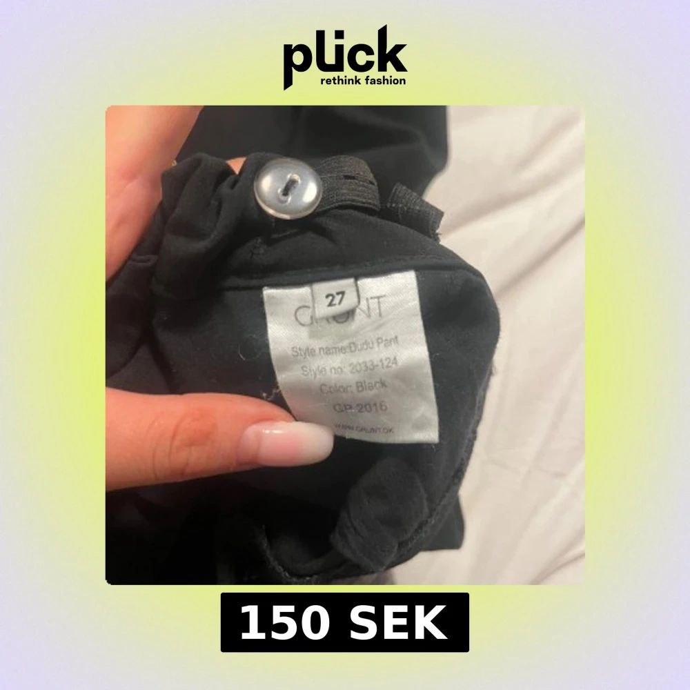 Säljer ett par svarta byxor från Grunt, modell Dudu Pant. Byxorna har en elastisk midja och är perfekta för en stilren look. De är tillverkade i ett bekvämt material och har en enkel design som passar till många olika tillfällen. Jag är 164 cm lång och dem passar utmärkt!