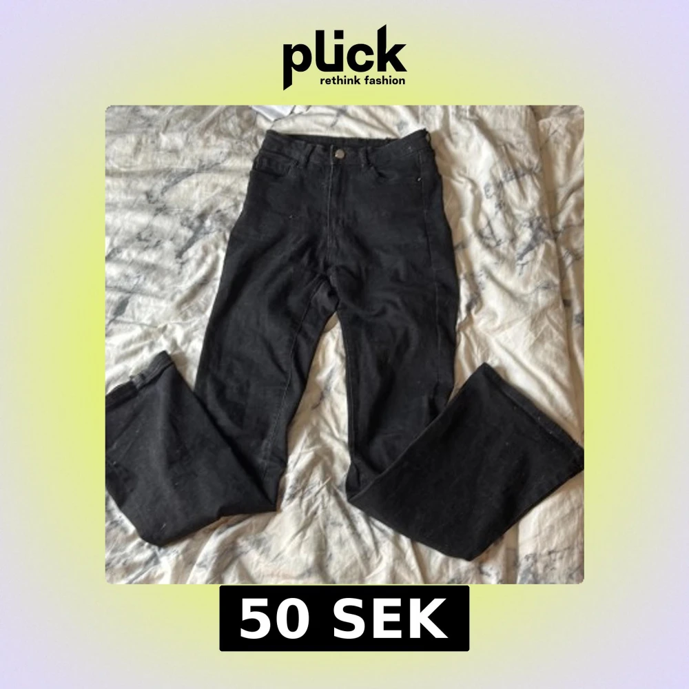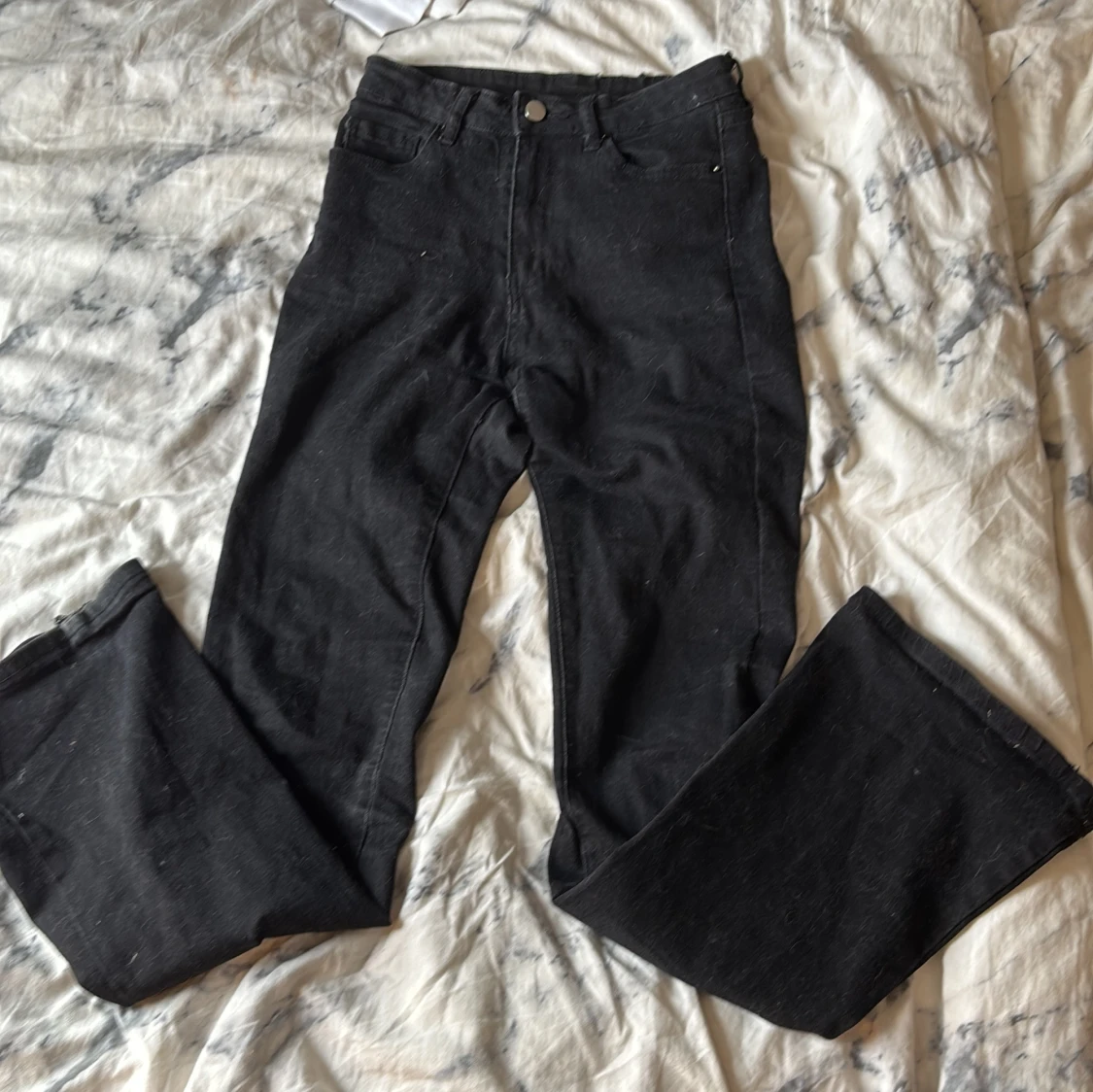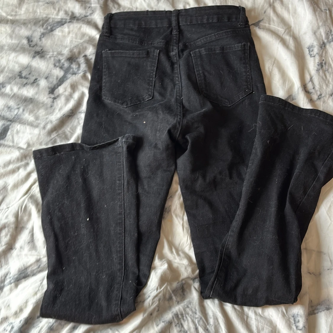 Svarta jeans från SHEIN i bootcut-modell med hög midja. Klassisk femficksdesign och dragkedja med knapp framtill. Jeansen är tillverkade i ett jeansmaterial och har en snygg, tidlös look som passar till allt.