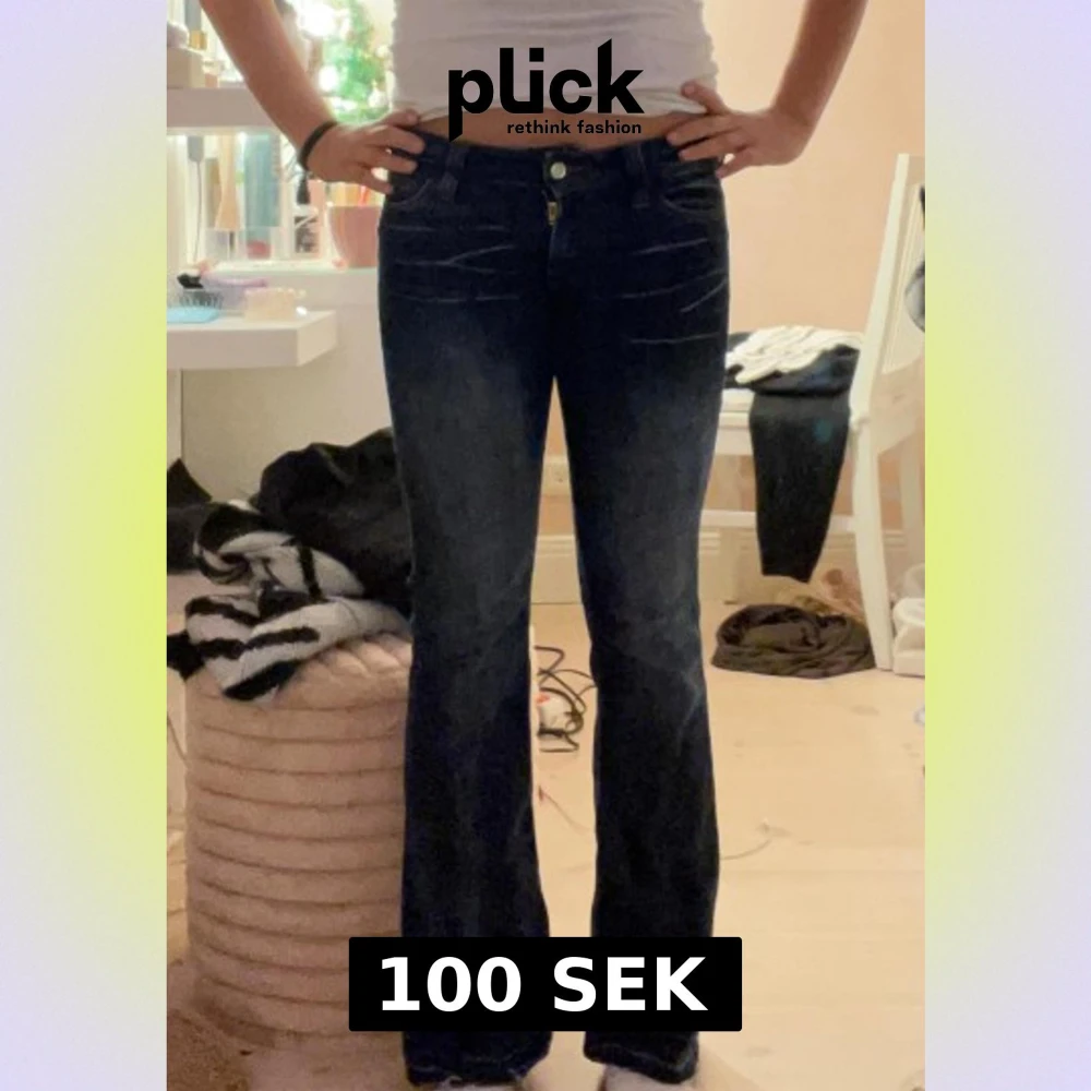 Mörkblå bootcut jeans från Cheap Monday med klassisk femficksdesign och slitna, fransiga benslut. Jeansen har låg midja och är tillverkade i en stretchig bomullsblandning med polyester och elastan för skön passform. Snygga kontrastsömmar och diskret tvättad look. Sprättat upp sömmen där nere och klippt ett jack i midjan men inget som syns när man har på sig stickad eller en tjocktröja!!❤️