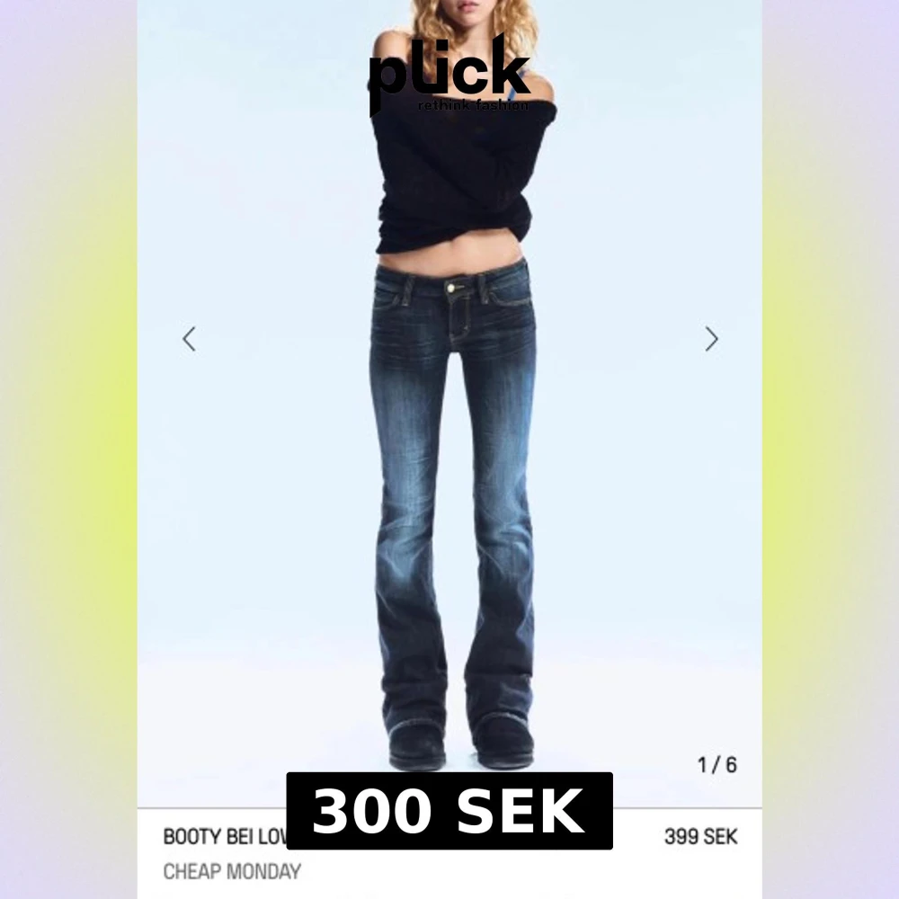 Mörkblå jeans från Cheap Monday med låg midja. Säljer jeansen då jag köpte fel storlek