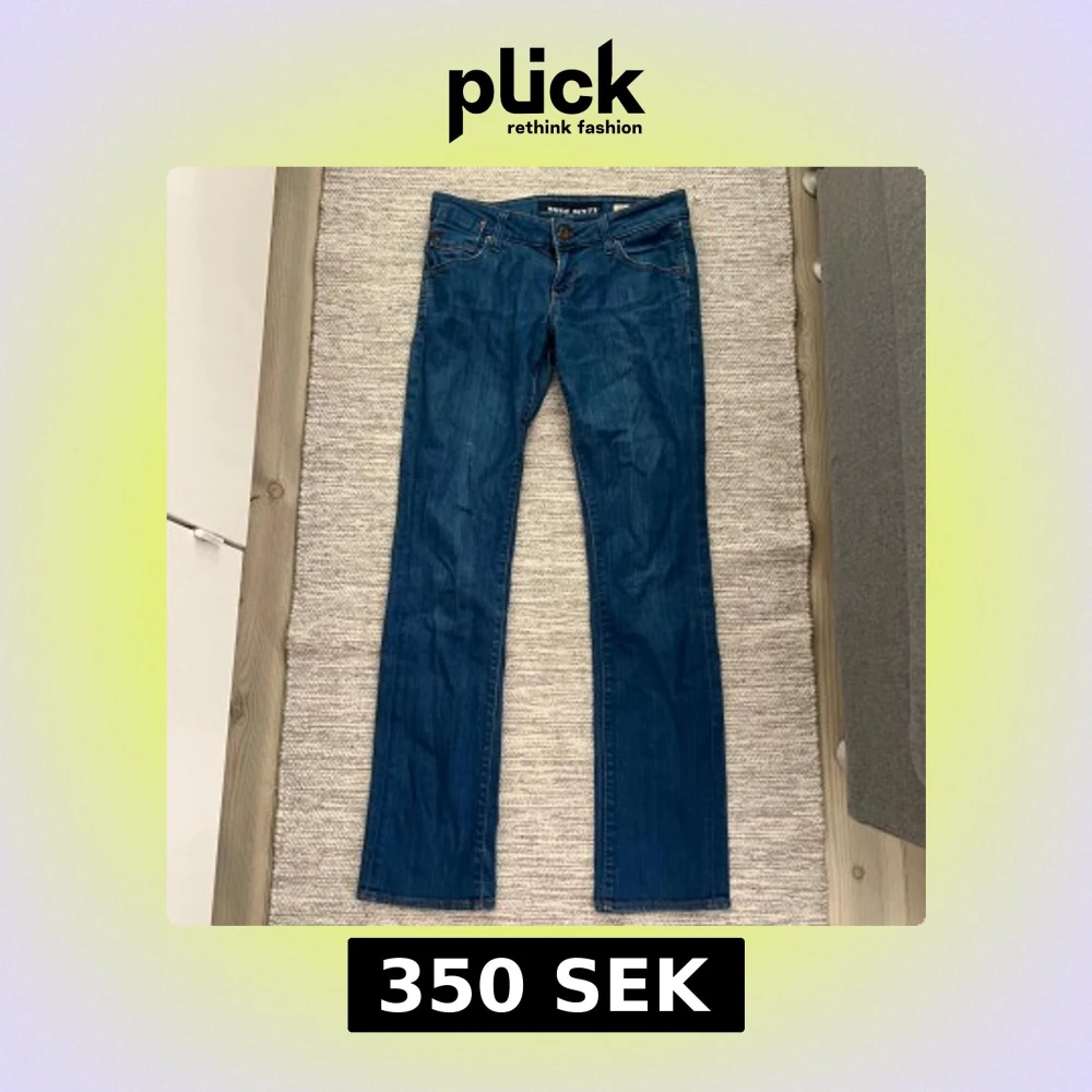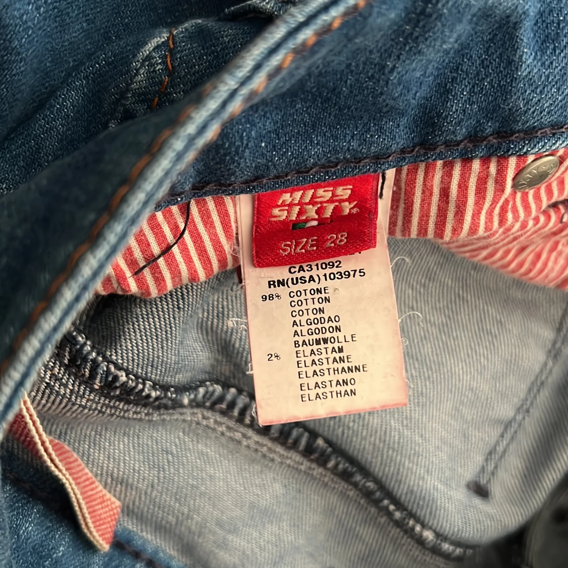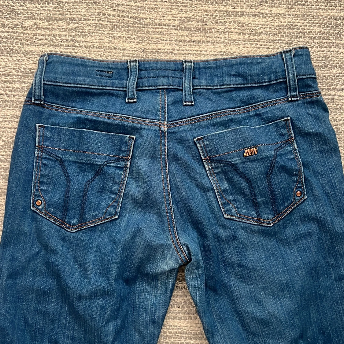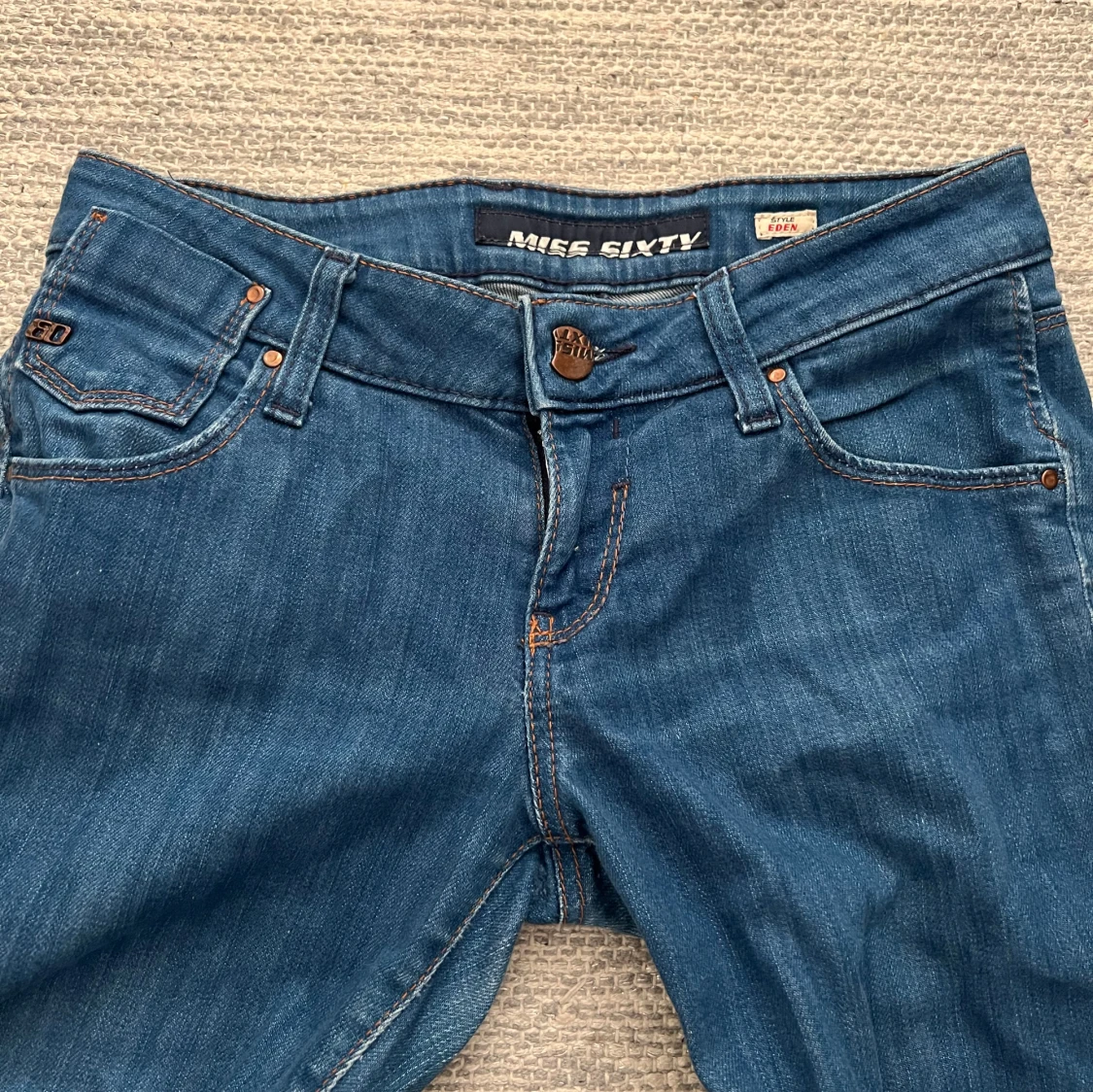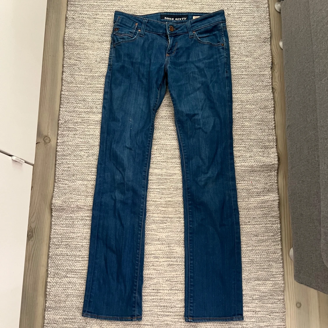 Snygga blå raka lågmidjade jeans från Miss Sixty med klassisk femficksdesign och knappgylf. Tillverkade i Italien av bomull och elastan för en bekväm passform. Kolla den andra annonsen eller skriv för fler bilder 🤍