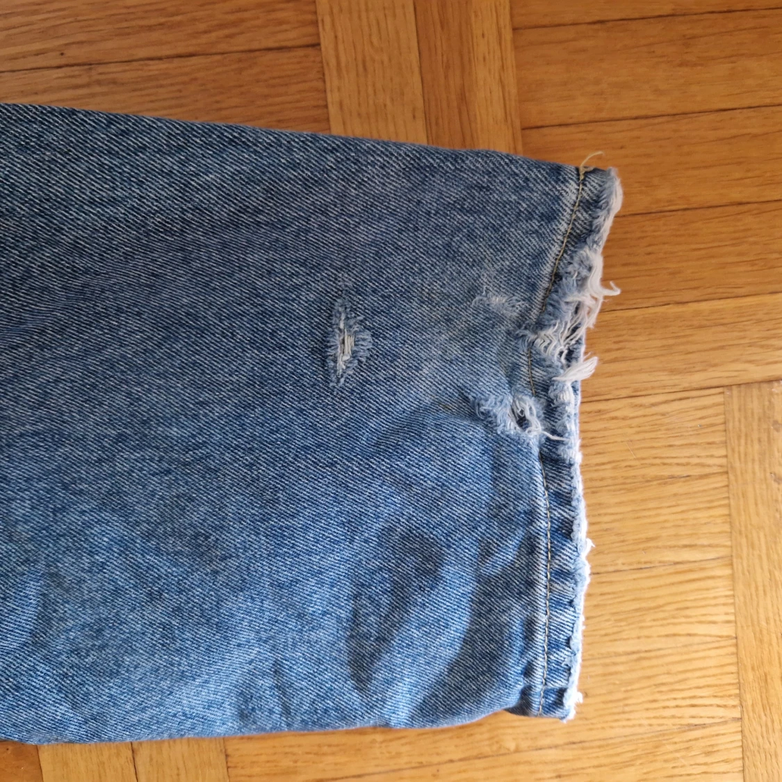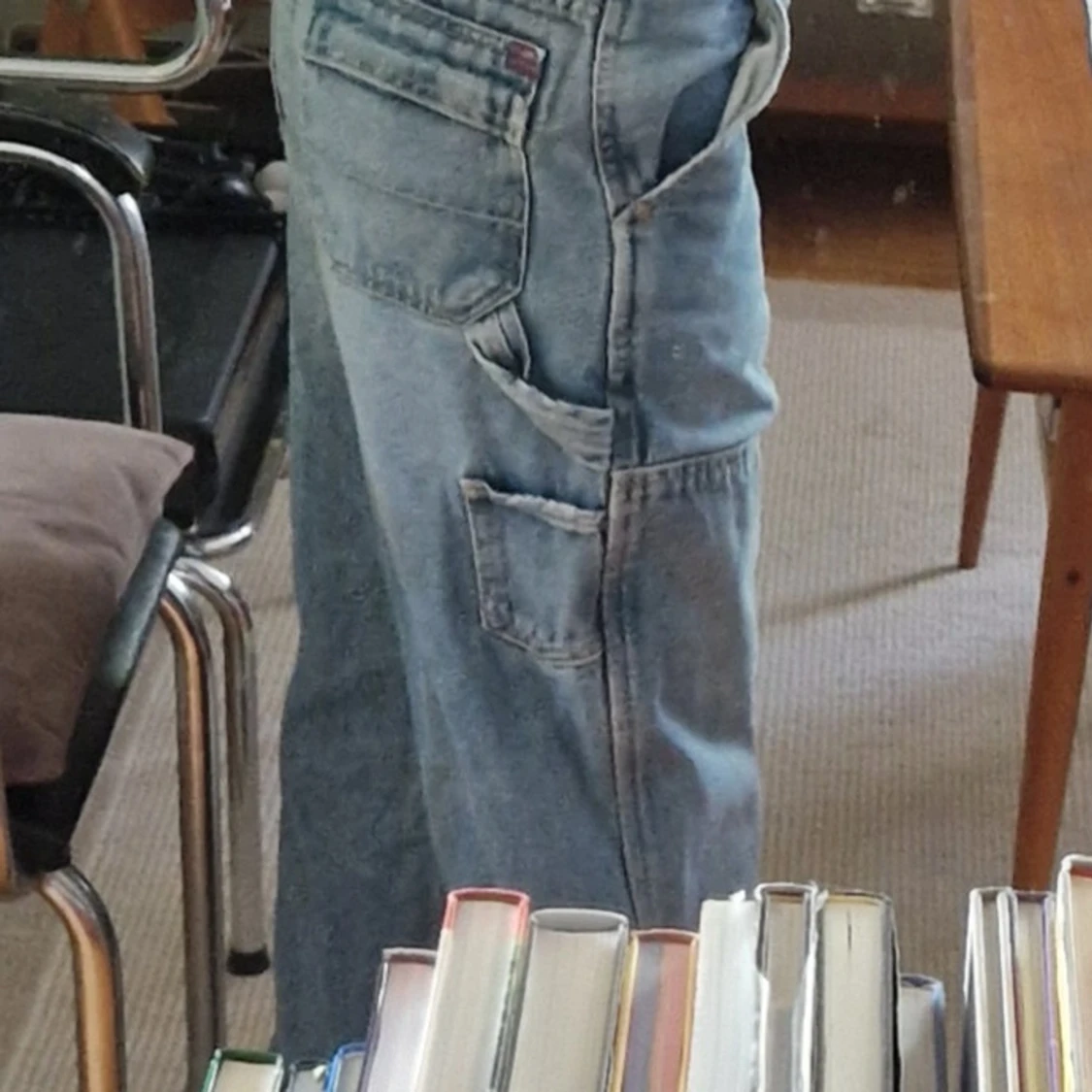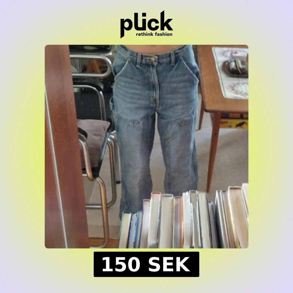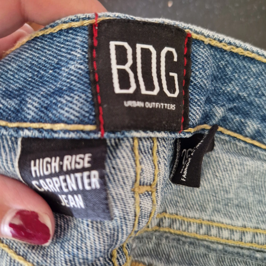 Säljer ett par ljusblå high-rise carpenter jeans från BDG Urban Outfitters. Byxorna har breda ben, flera praktiska fickor på sidorna och klassisk jeanslook. Perfekt för dig som gillar en loose och avslappnad stil. Lite slitage nere på ena benet (se bild 5).