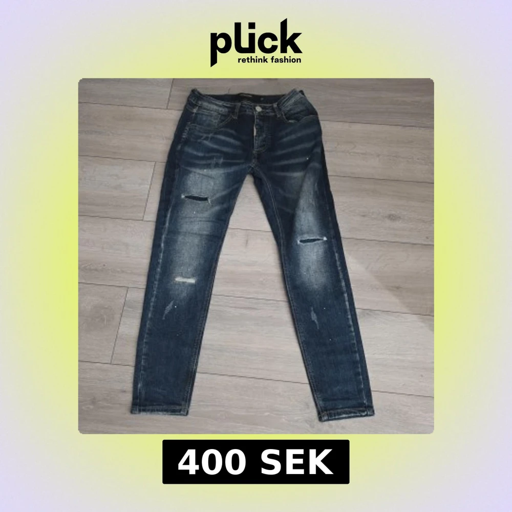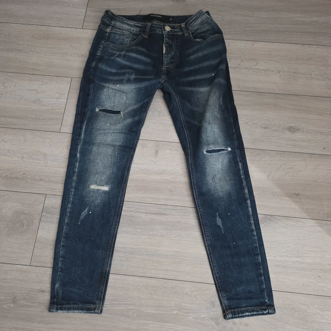 Snygga mörkblå skinny jeans från Alessandro Zavetti med slitningar och coola detaljer. Jeansen har klassisk femficksdesign, låg midja och smal passform. Perfekta för dig som gillar en streetig look med lite edge.