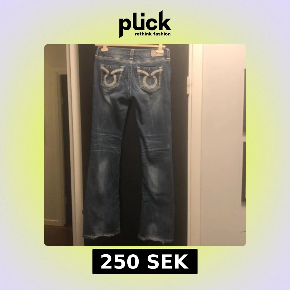 Snygga blå jeans från Big Star med unika broderade detaljer på bakfickorna. De har en klassisk bootcut-stil och i perfekt skick förutom lite slitna sömmar längst ner bak, se bild. Stl 28 lång.