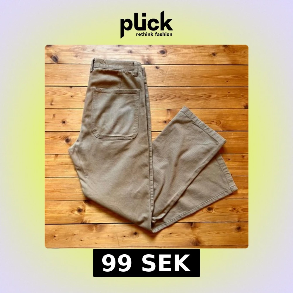 Snygga beiga jeansbyxor från Knowledge Cotton Apparel i rak modell. Byxorna har stora utanpåfickor fram, bälteshällor och stängs med knapp och dragkedja. Tillverkade i mjuk bomull, perfekta för en clean och avslappnad stil. OBS: fläck under högra bakficka se bild 5