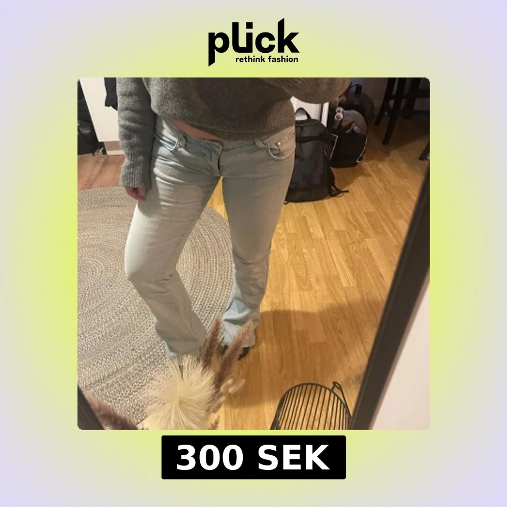 Snygga ljusblå bootcut jeans med låg midja. Obs, klippta där nere så passar någon som är ungefär 160-166 🩷🩷