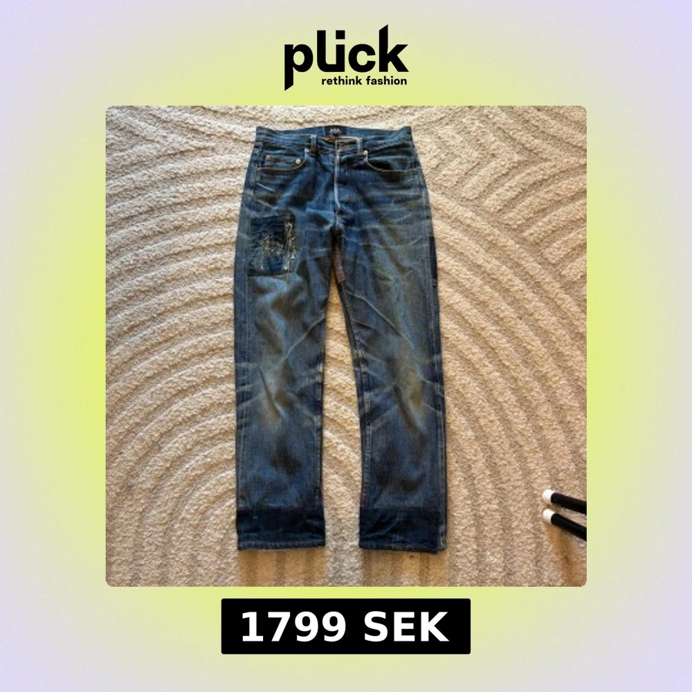 Unika blå jeans från A.P.C. med coola patchwork-detaljer och slitningar på både fram- och baksida.