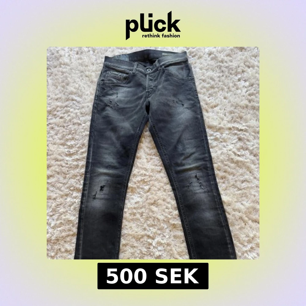 Snygga svart/grå jeans från Dondup med slitningar. Jeansen har en tightare passform som sitter snyggt längs hela benet. Perfekta för dig som gillar en modern och edgy stil. Knappt använda och i mycket bra skick.