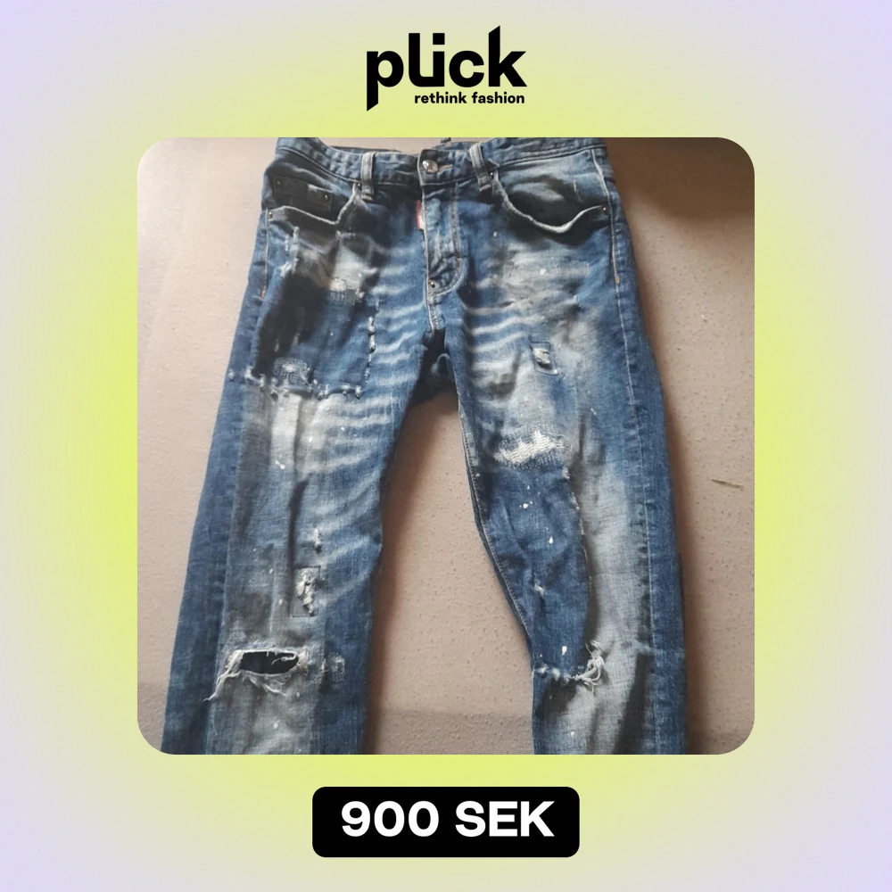 Säljer ett par coola blå jeans från Dsquared2 i storlek 29. De är lite sönder i gylfen men de inget man märker säljer dem för dem har blivit för små och passar inte mer .