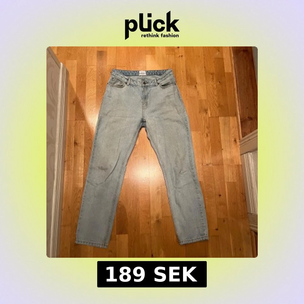 Säljer ett par ljusblå jeans från grunt med klassisk femficksdesign och raka ben. Jeansen har normal passform och är tillverkade i bomull. Perfekta för en avslappnad och stilren look.