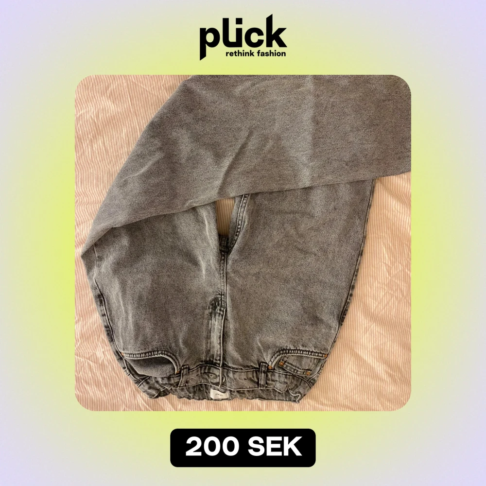 Säljer ett par grå jeans från GRUNT i bra skick. De har en loose passform med elastisk midja och klassiska femficksdetaljer. Perfekta för en avslappnad stil. Storlek 29 motsvarar 176 cm i längd.