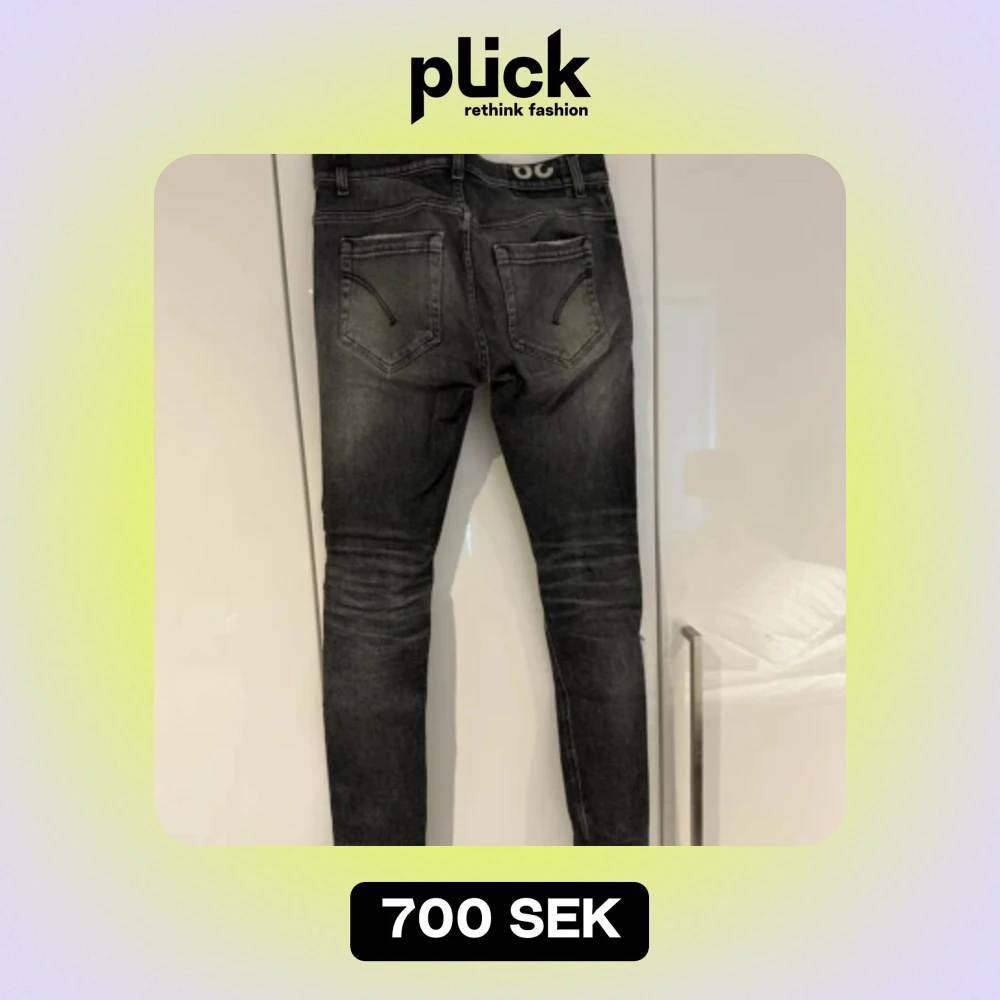 Mörkgråa dondup jeans men hål. Stolen är 29 och modell george.