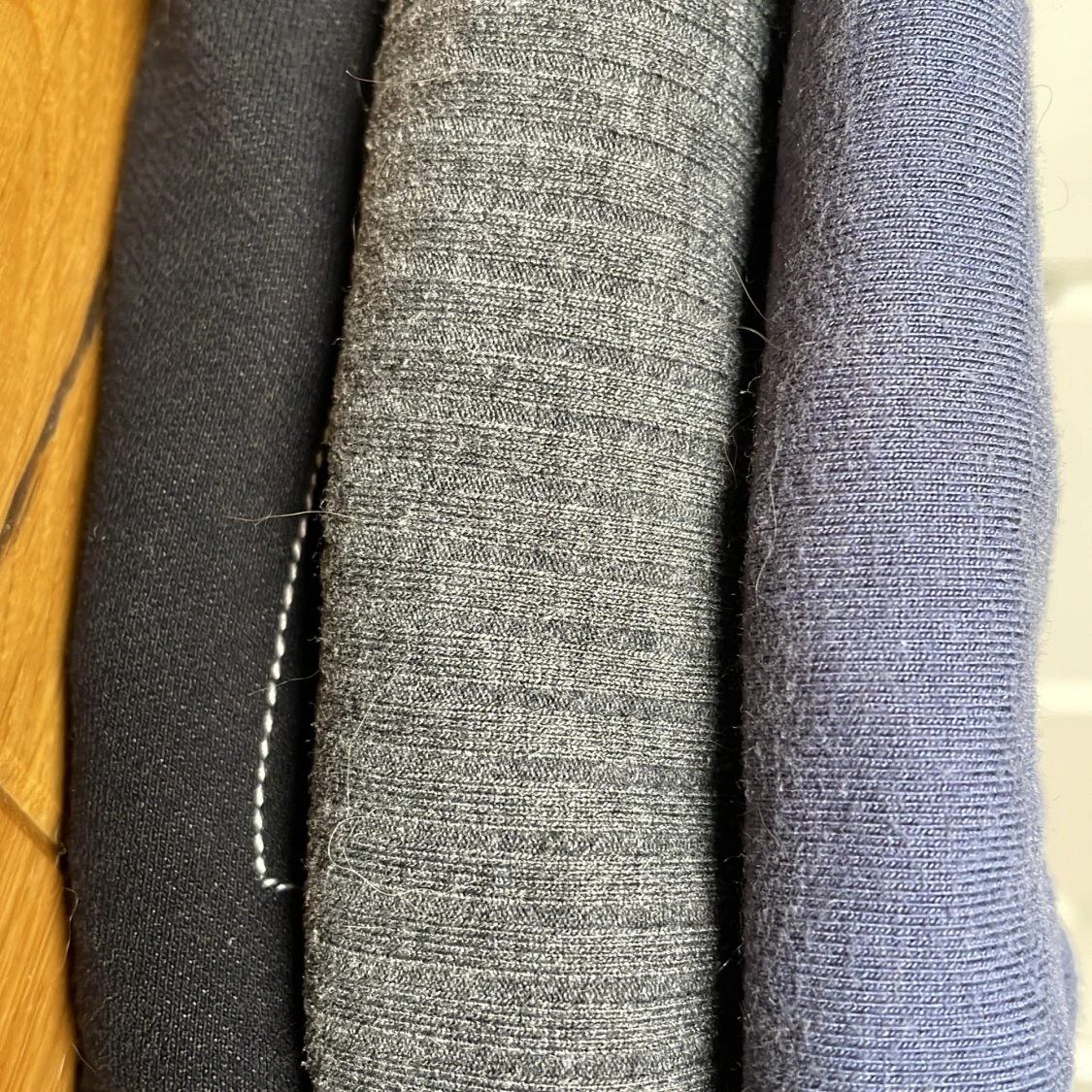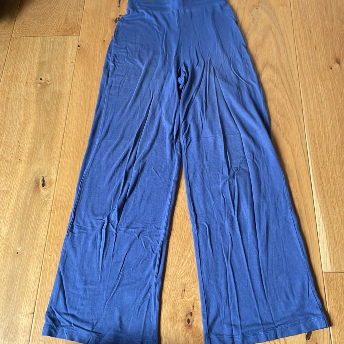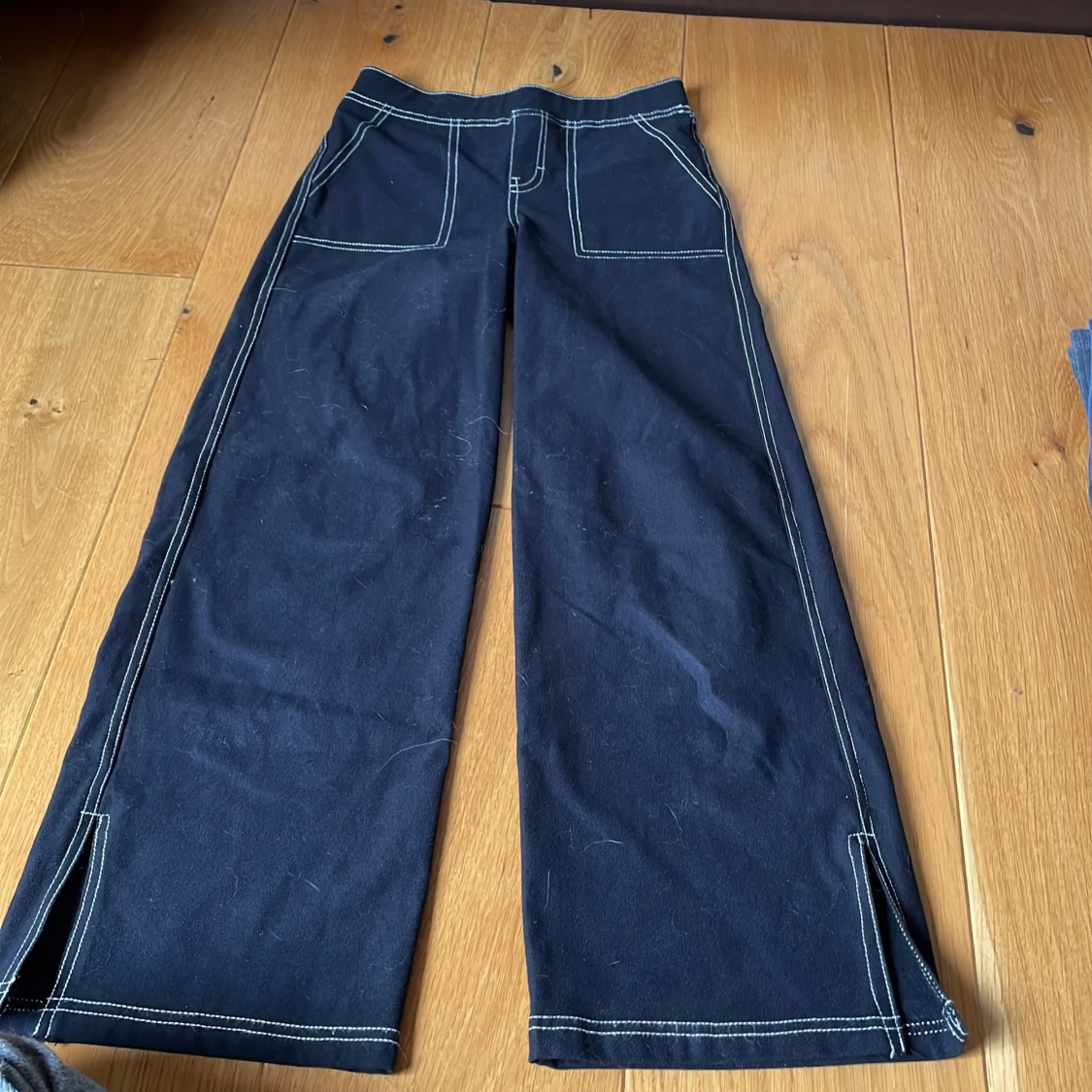 Alla byxor har stretch i midjan och de blåa byxorna är jätte mjuka i materialet och de svarta byxorna med vita sömmar är fejk jeans. 8-11Y. BRA KVALITET.