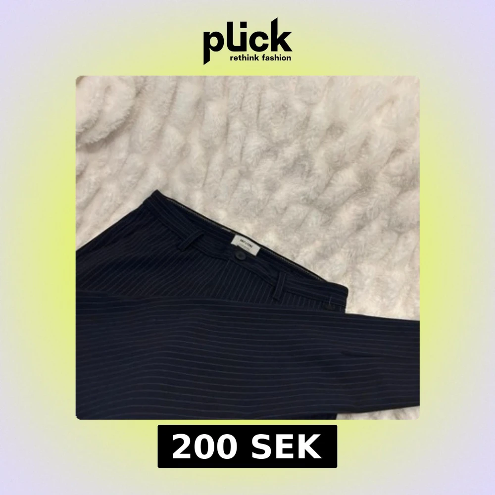 Snygga mörkblå kostymbyxor från Only & Sons med tunna vita ränder. Klassisk passform med bälteshällor, knapp och dragkedja fram samt fickor bak. Perfekta för en clean och stilren look.