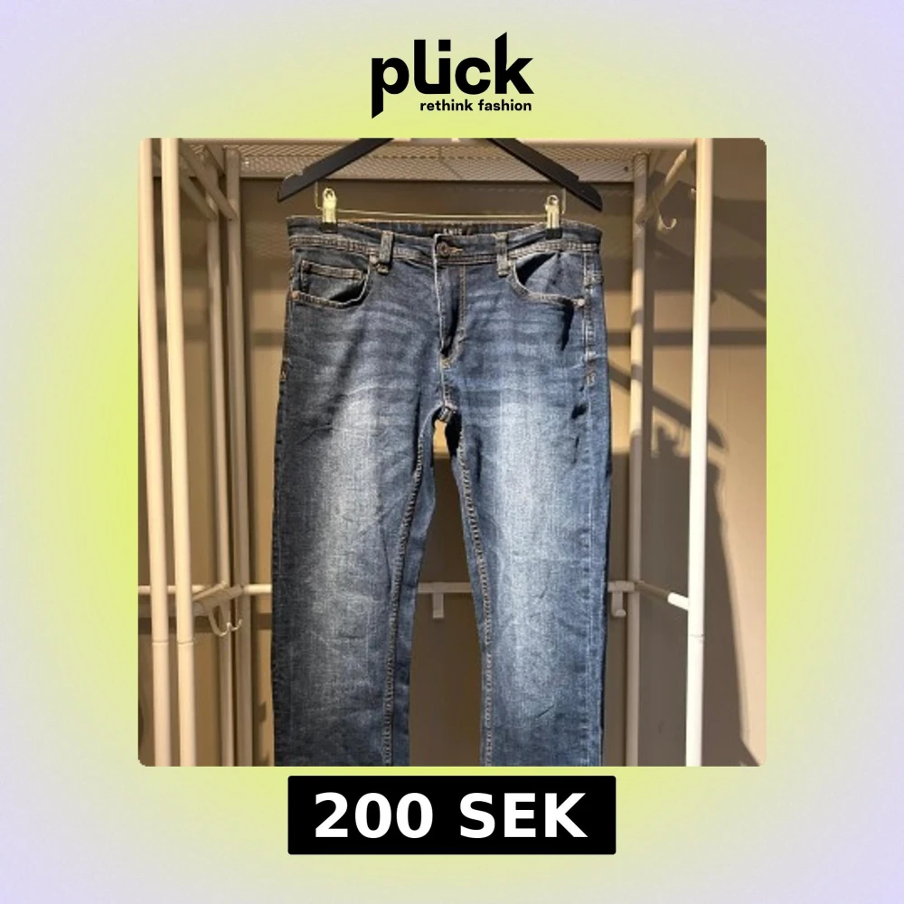 Säljer ett par klassiska blå jeansbyxor från SMOG med normal passform. Byxorna har fem fickor, gylf med dragkedja och knäppning samt snygga kontrastsömmar. Perfekta för en avslappnad stil.