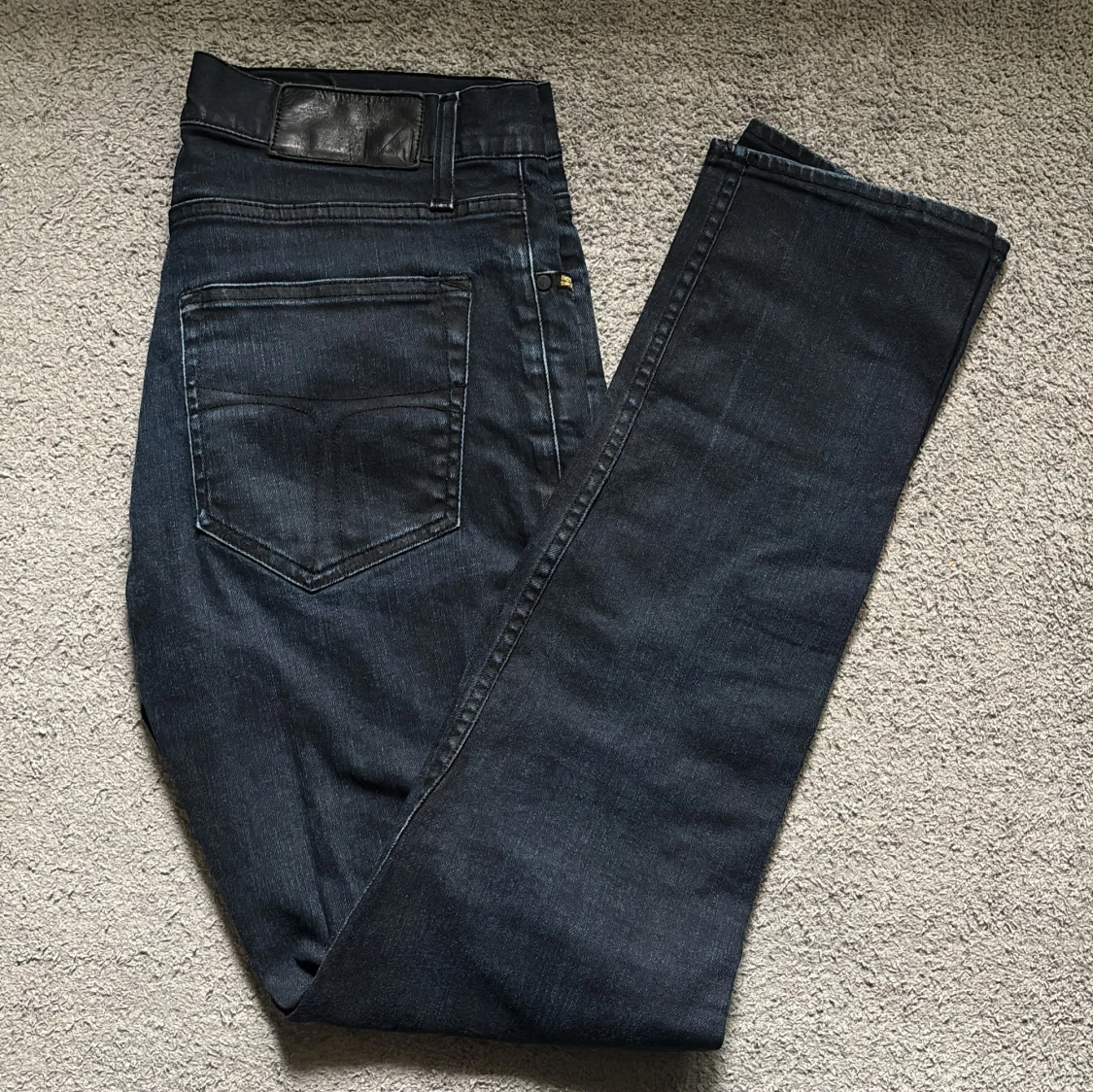 Snygga mörkblå jeans från Pistolero, modell Skeletor. Klassisk femficksdesign med raka ben och diskreta sömmar. Jeansen har en svart läderpatch i midjan och är tillverkade i ett slitstarkt denimtyg. Perfekt för dig som gillar stilrena och tidlösa jeans.