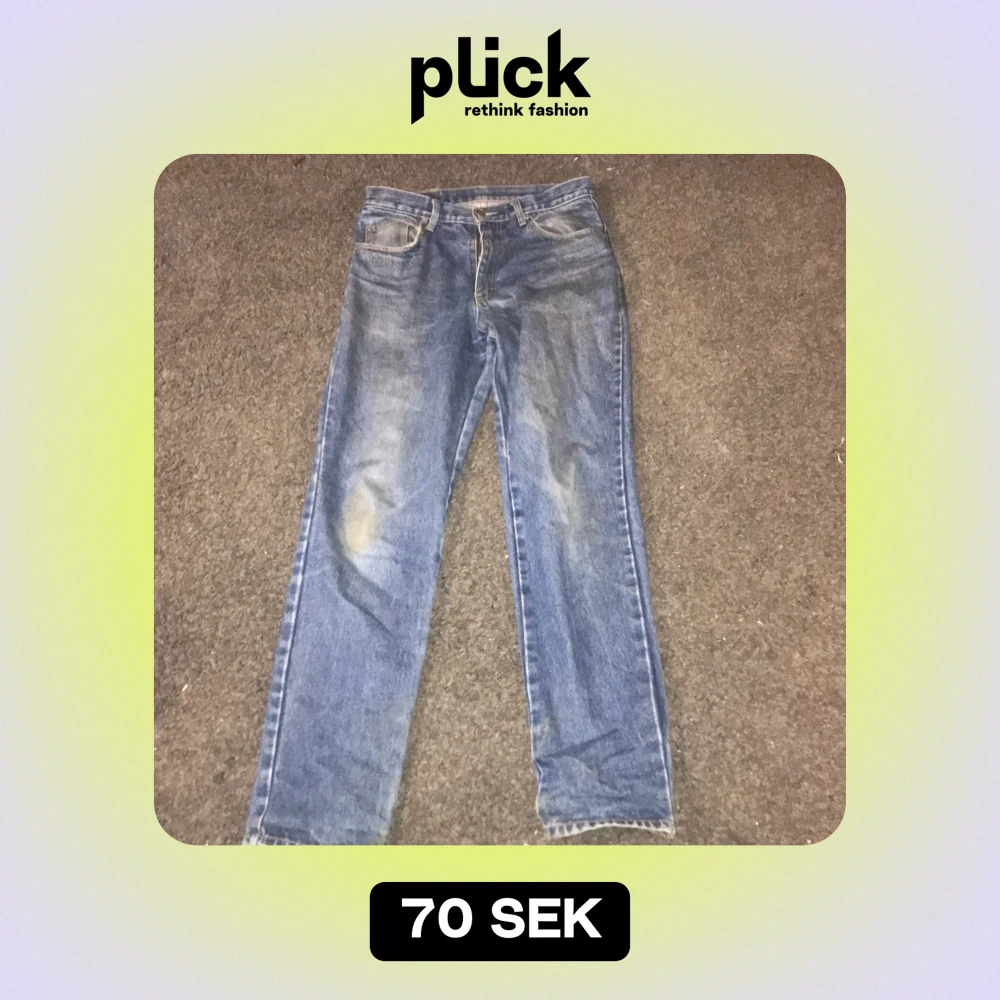 Säljer ett par klassiska blå jeans från Staroup. De har en rak passform och är tillverkade i denim. Perfekta för en avslappnad stil.