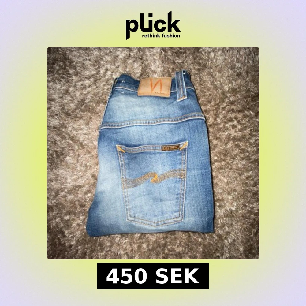 Säljer ett par klassiska blå jeans från Nudie Jeans som är i väldigt bra skick i storlek 30/30 och modell Thin Finn. Byxorna har normal passform och raka ben, med Nudie-logga på bakfickan och läderpatch i midjan. Perfekta för dig som gillar stilrena jeans! Har du några funderingar så är det bara att skriva till mig.