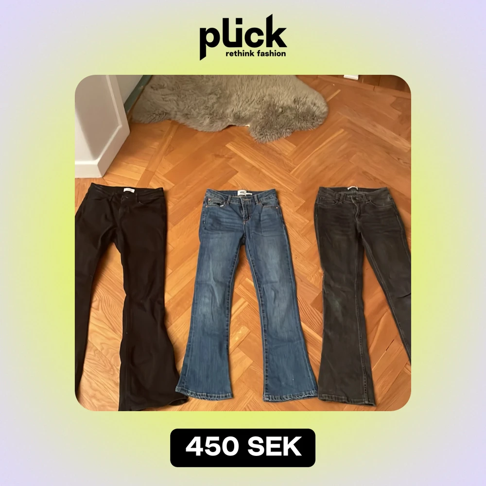 Säljer tre par bootcut byxor i svart, blått och mörkgrått. De svarta är från Lindex och de blå från 157 med modellen 'Skippy Flare'. Perfekta för både vardag och fest! Alla byxor har en snygg flare och normal passform.🥰🥰