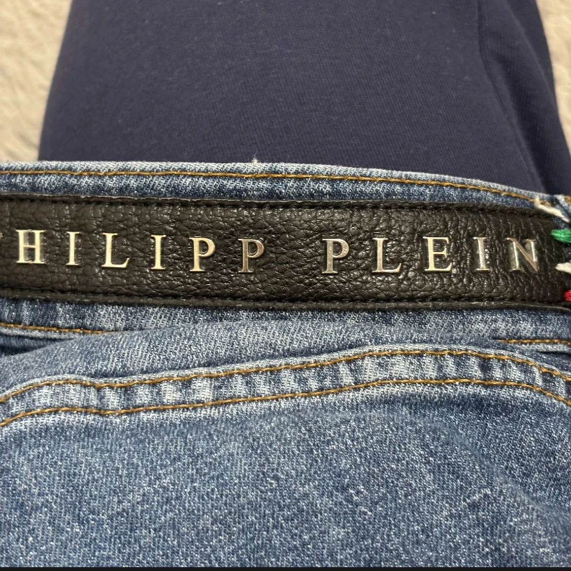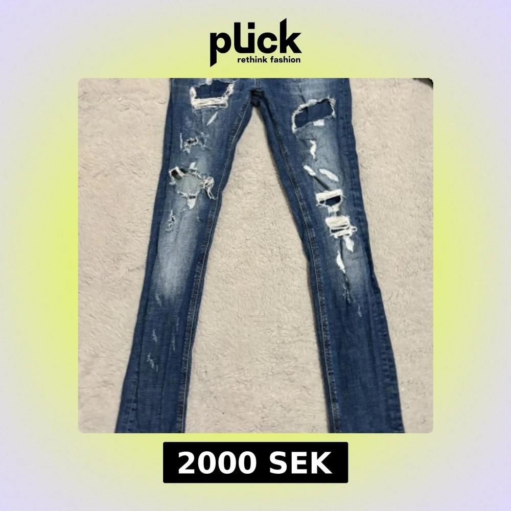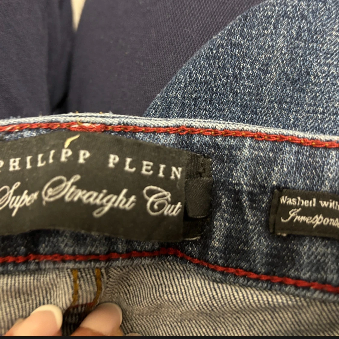 Snygga blå jeans från Philipp Plein med coola slitningar och en super straight passform. Jeansen har en klassisk design med knappgylf och märkets logga på baksidan. Perfekta för en trendig look!