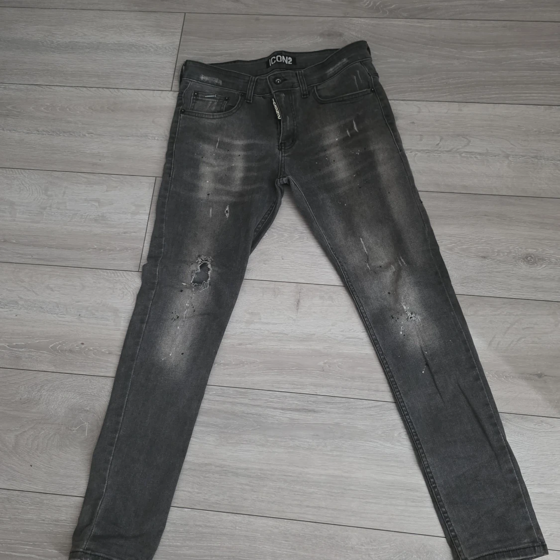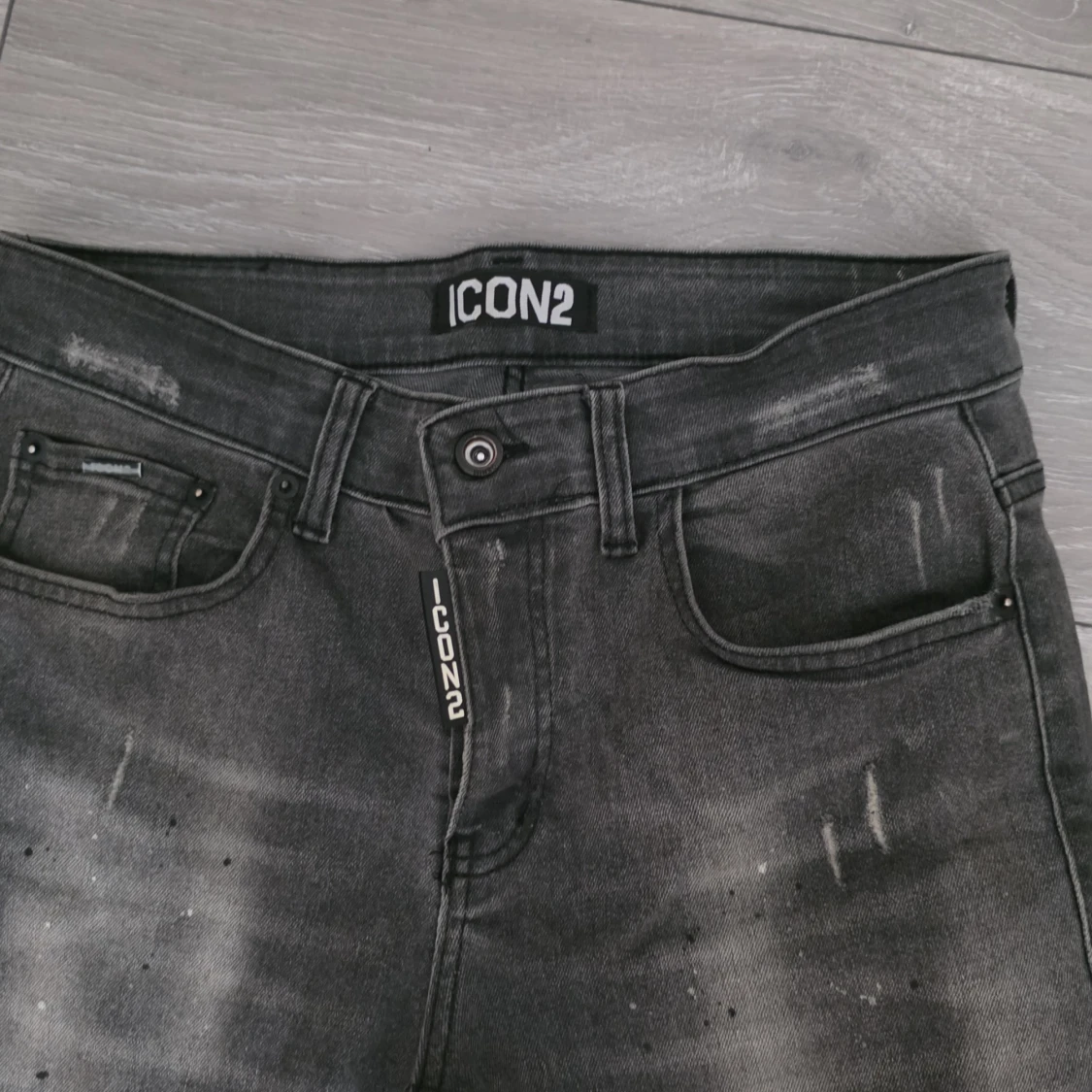 Snygga svarta skinny jeans från ICON2 med slitningar och hål på benen för en cool, sliten look. Jeansen har fem fickor, dragkedja och knapp framtill samt tydliga tvättade detaljer. Perfekta för dig som gillar streetstyle. Storlek w31 l 32