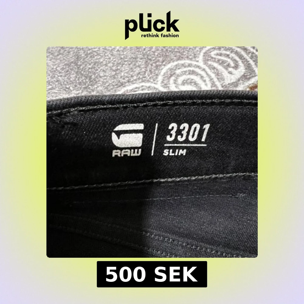 Säljer ett par svarta G-Star RAW 3301 Slim jeans. Byxorna har en smal passform och klassisk femficksdesign. Perfekta för dig som gillar stilrena och moderna jeans med snygg siluett.