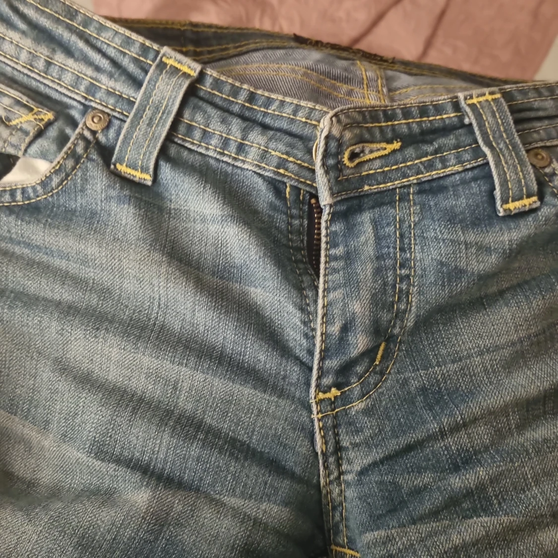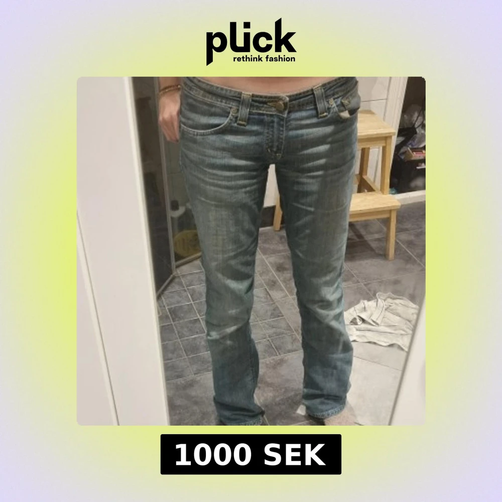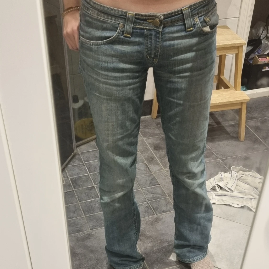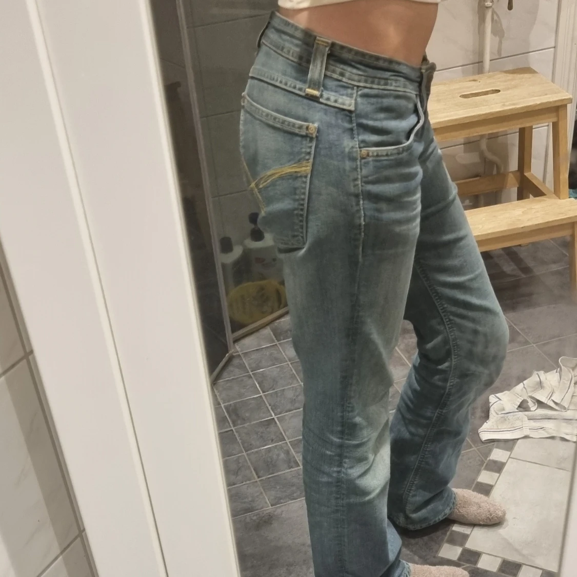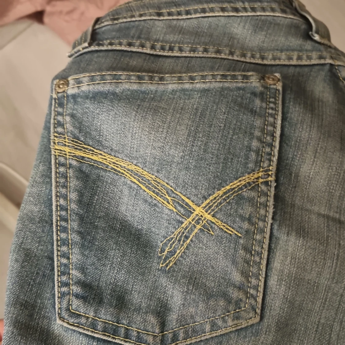 Säljer ett par superlågmidjade blå bootcut jeans från Denimbirds i storlek 31/34. De har inga tecken på användning och passar perfekt på mig som är 172 cm.Jeansen har klassisk femficksdesign, snygga slitningar och kontrastsömmar i gult. Modellen har låg midja och är tillverkad i mjukt denimtyg som sitter skönt hela dagen.