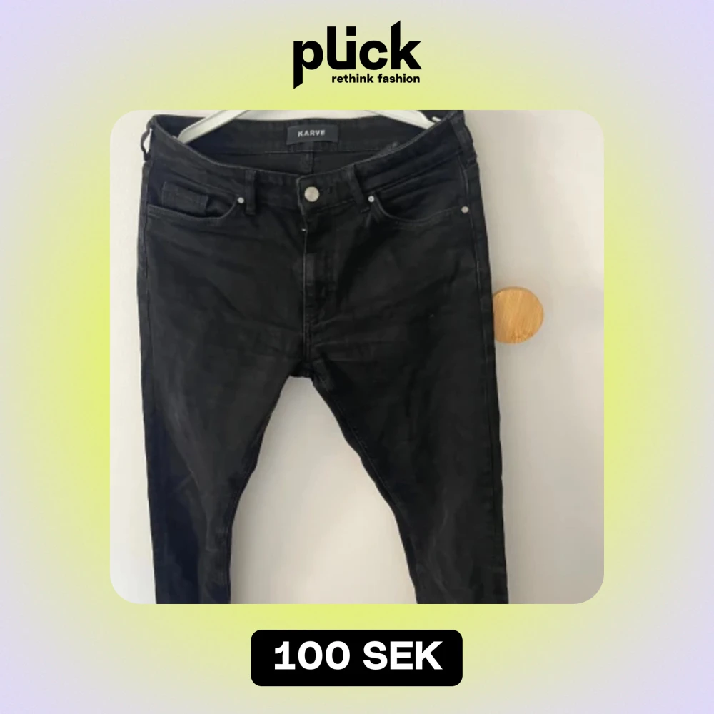 Säljer ett par svarta jeans från Karve. De är i bra skick och har en snygg, tight passform. Perfekta för både vardag och fest! 🖤