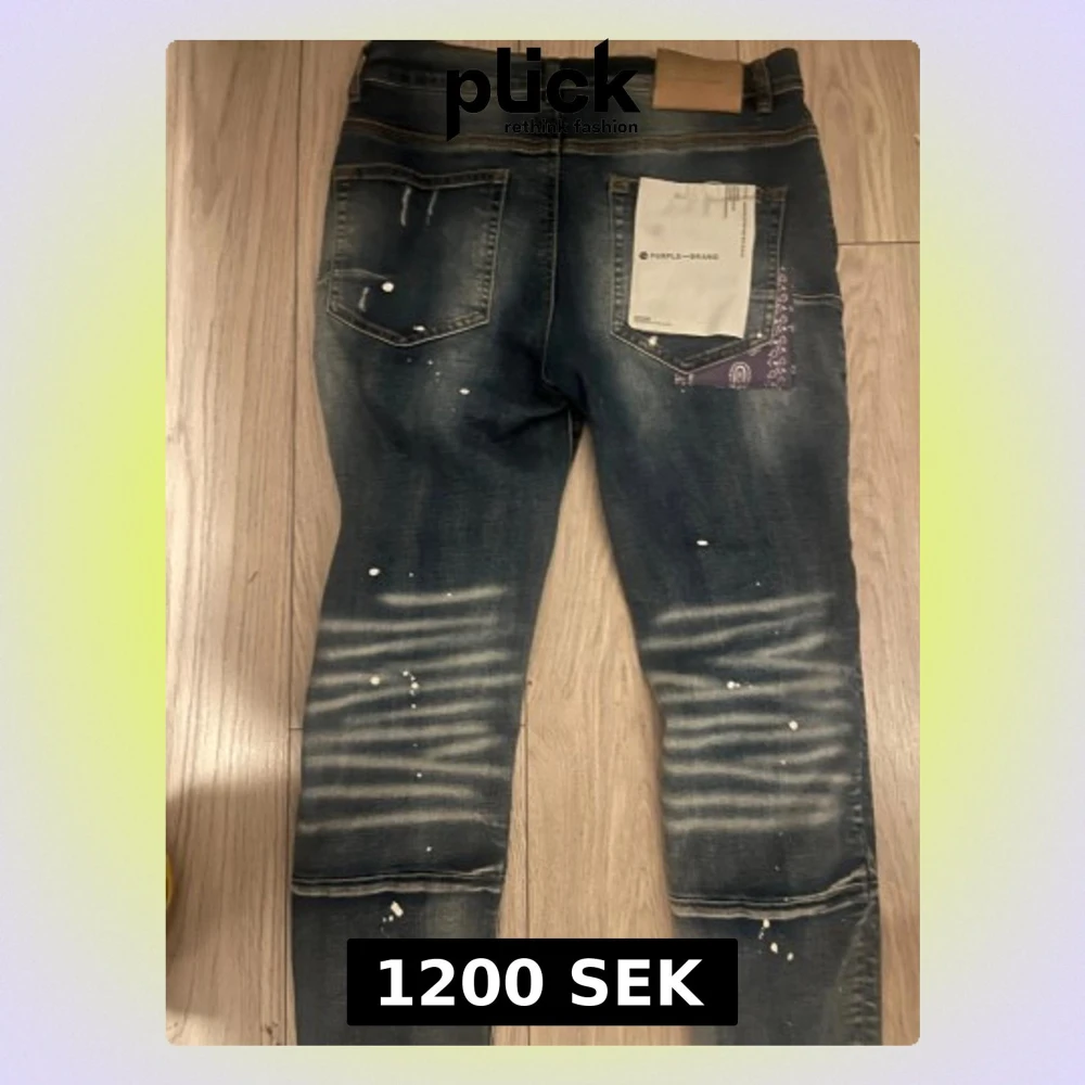 Säljer ett par snygga skinny jeans från Purple Brand i mörkblå tvätt med slitningar, patchade detaljer och färgstänk. Jeansen har klassisk femficksdesign, låg midja och coola kontrastdetaljer som bandana i bakfickan. Perfekt för dig som gillar streetstyle. Kommer med original box.