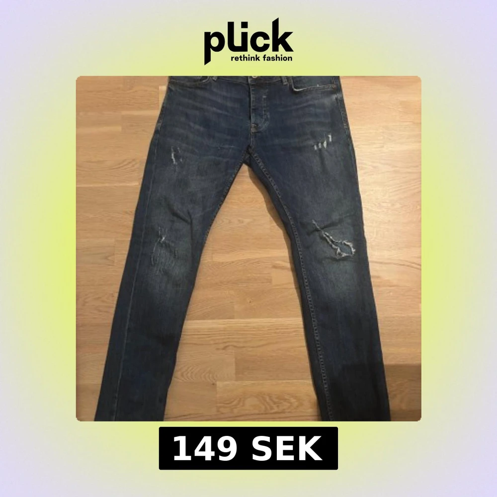 Snygga blå jeans från SMOG i storlek 32/32. Jeansen har coola slitningar och detaljer på framsidan, klassisk femficksdesign och brunt läderpatch bak i midjan. Passformen är rak och materialet är robust denim. Perfekt för dig som gillar en avslappnad streetstil. Säljer då de var förstora vid köp. Hör av er vid minsta fundering😊