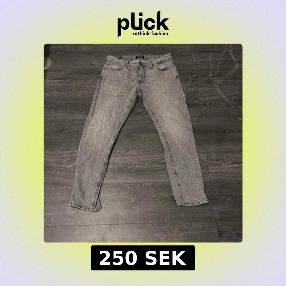 Säljer ett par grå jeans i modellen Tapered/Mike med snygg tvättad look. Jeansen har klassisk femficksdesign och avsmalnande ben. Perfekta för dig som gillar en modern och avslappnad stil. Materialet är jeans och färgen är ljusgrå. Använd fåtal gånger