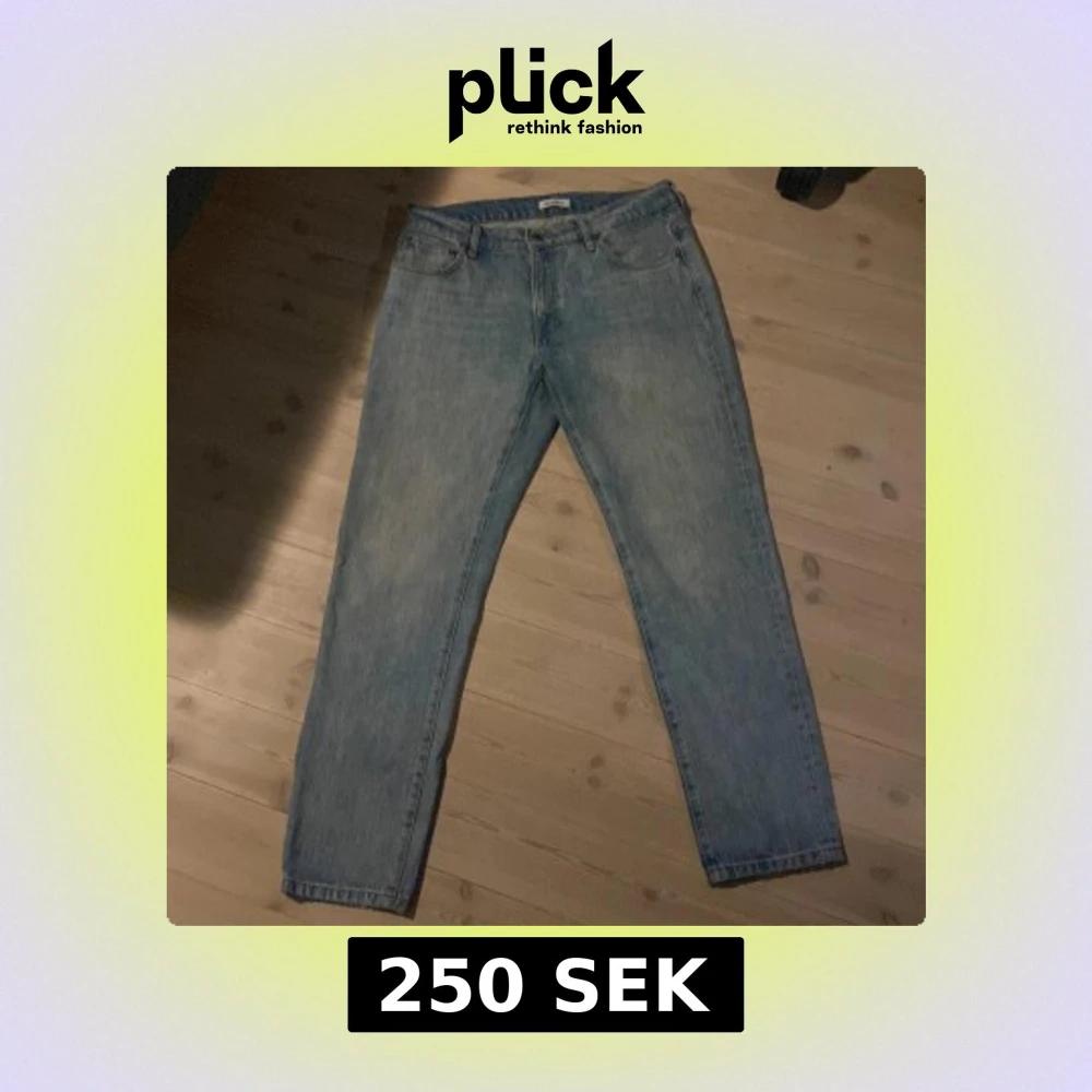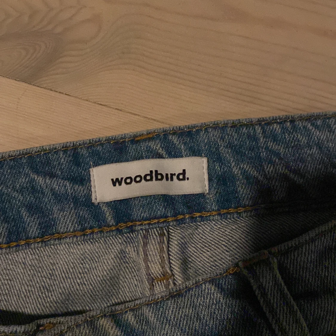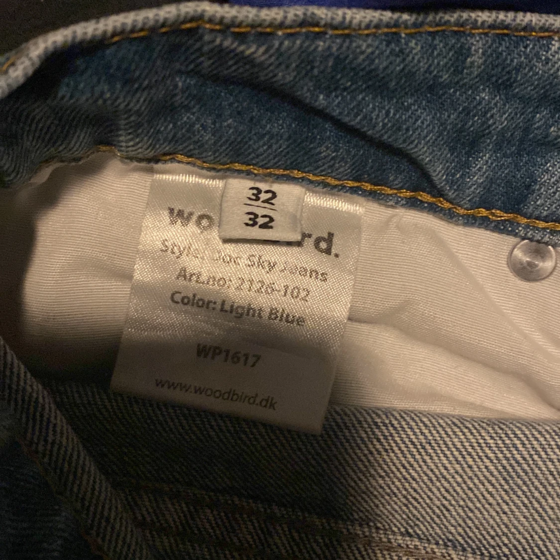 Säljer ett par ljusblå jeans från Woodbird i klassisk rak modell. Jeansen har fem fickor, bälteshällor och stängs med dragkedja och knapp. Perfekta för dig som gillar en clean och enkel stil. Storlek 32/32.