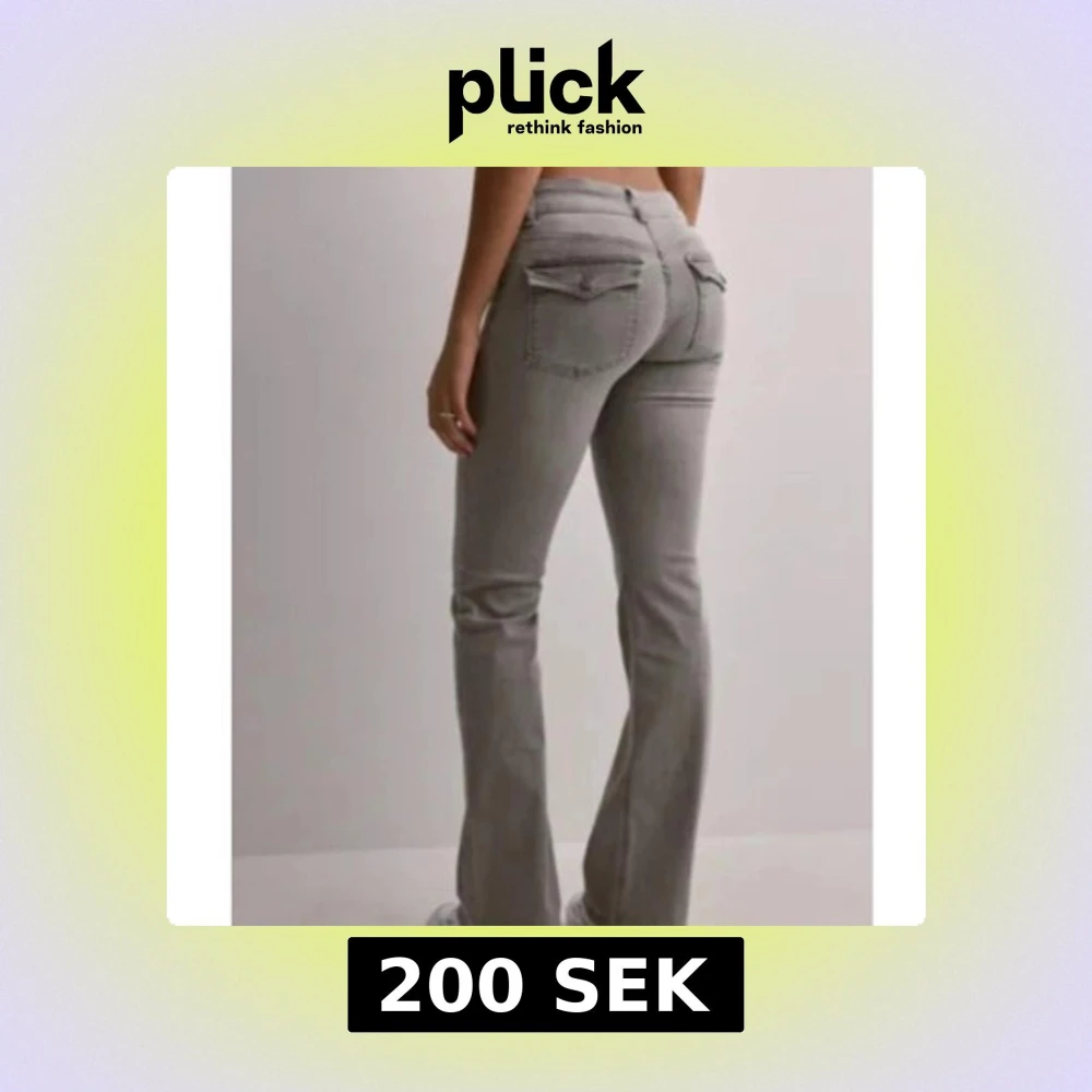 Snygga grå jeans med bootcut passform och coola fickdetaljer bak. Jeansen har låg midja och är tillverkade i ett mjukt denimtyg som sitter skönt. Perfekta för dig som vill ha en trendig och avslappnad look.