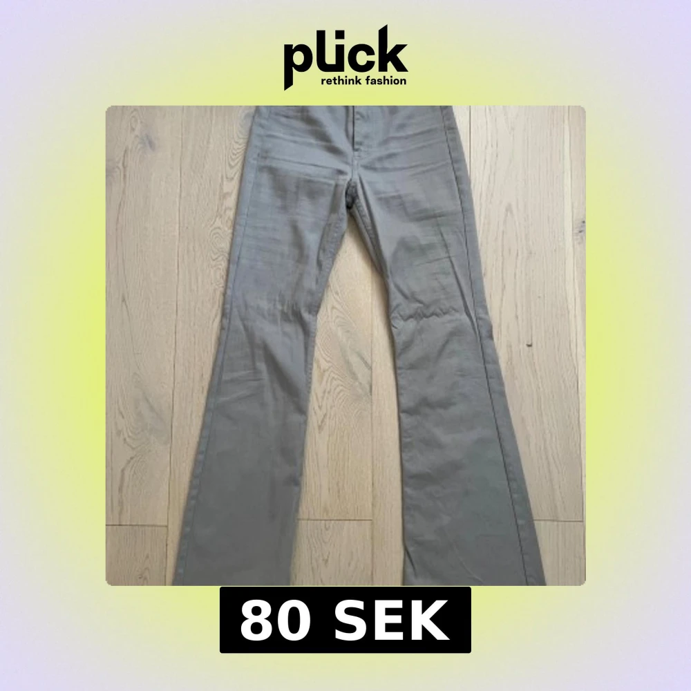 Snygga grå bootcut-byxor från H&M Divided i storlek 32. Byxorna har en klassisk bootcut-passform med lite utsvängda ben och är tillverkade i ett mjukt bomullsmaterial. Perfekt för dig som gillar en retro vibe och vill ha en clean look.