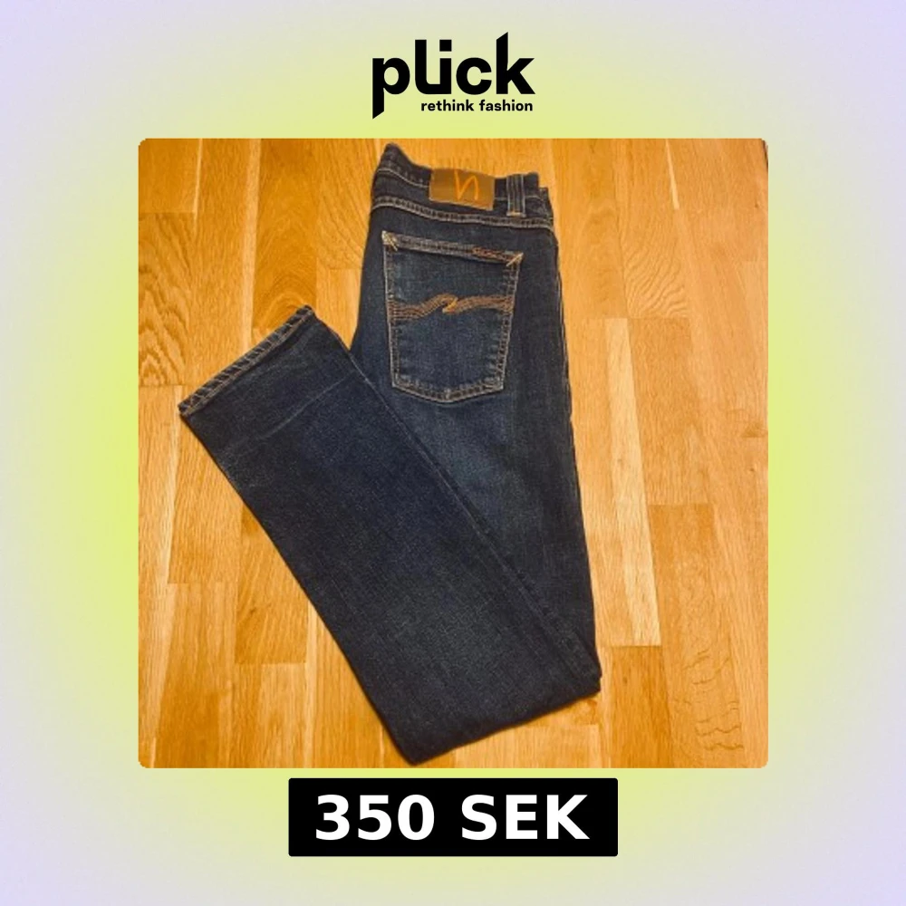 Snygga mörkblå jeans från Nudie Jeans. Jeansen har en rak passform och är tillverkade i slitstarkt denim. Perfekta för en grisch look. Priset kan gå ner. W32 L32