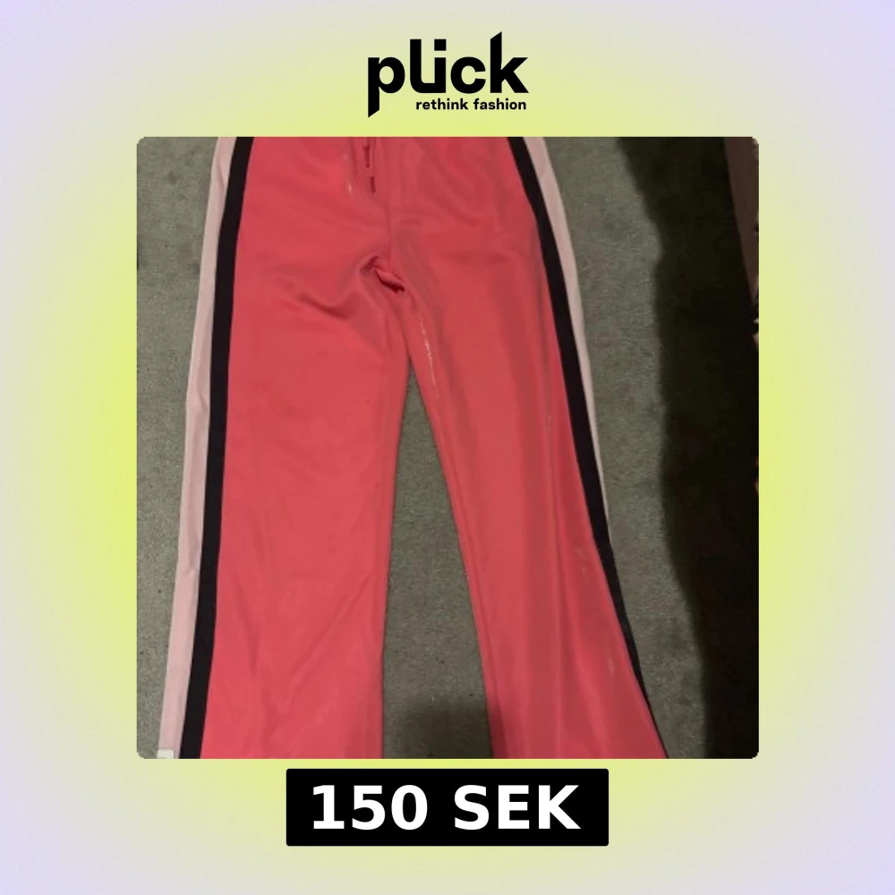 Snygga rosa träningsbyxor med svarta och ljusrosa ränder längs sidorna. Byxorna har en loose passform och snörning i midjan för extra komfort. Storlek 158 och märket wow. Men kan passa om du är small och under 163 cm