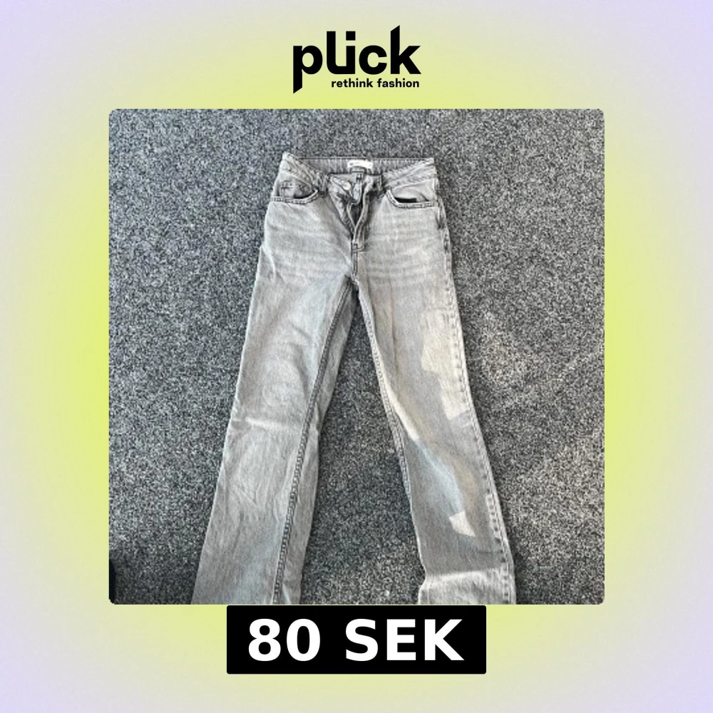 Säljer ett par grå jeans från gina tricot i storlek 32. Byxorna har klassisk femficksdesign, dragkedja och knapp framtill samt bootcut mid. Perfekta till dig som gillar en enkel och stilren look.