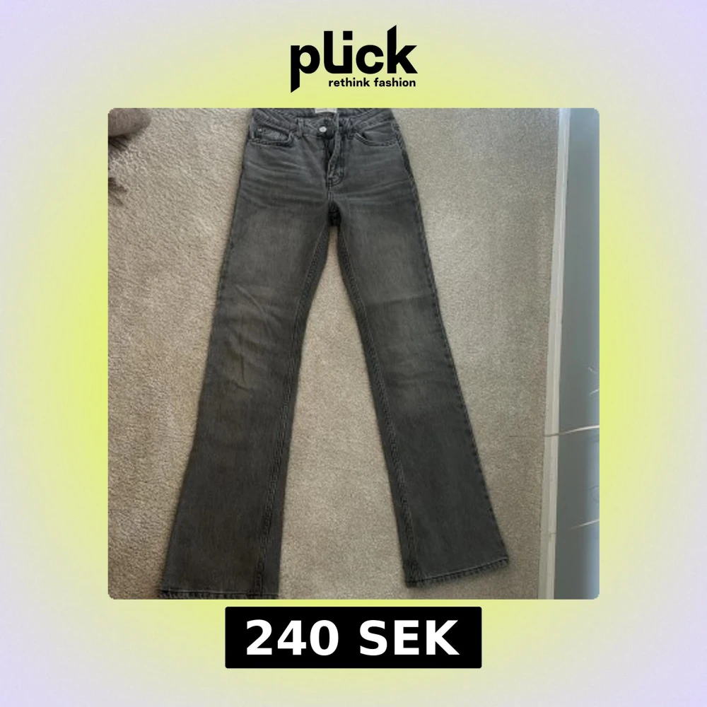 Säljer ett par gråa bootcut jeans från gina tricot, Jeans i storlek 32. Jeansen har klassisk femficksdesign, normal passform och är tillverkade i mjukt denimtyg. Snygg tvättad grå färg som passar till allt och ger en cool vibe.