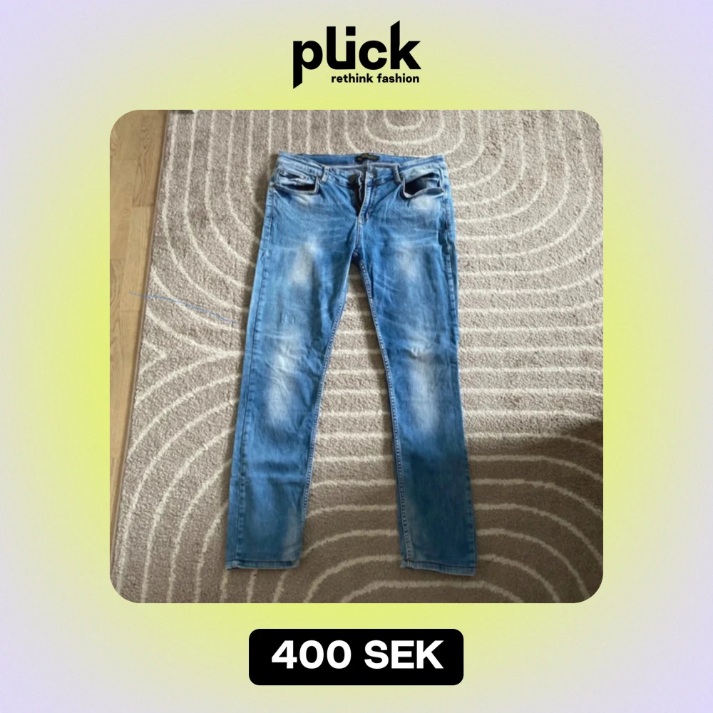 Säljer ett par snygga blå jeans från Dsquared2. De har en klassisk femficksdesign och en cool, sliten look. Perfekta för både vardag och fest! 🕺