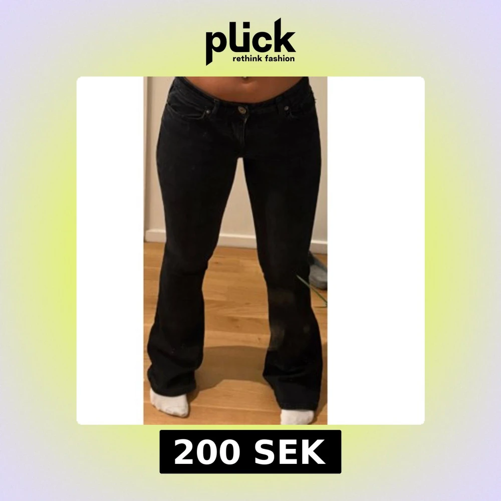 Snygga svarta jeans med bootcut-modell och hög midja. Jeansen har klassiska fem fickor, bälteshällor och stängs med knapp och dragkedja. Perfekt passform som sitter tajt över låren och släpper ut vid vaden. Materialet är stretchigt jeans för extra komfort.