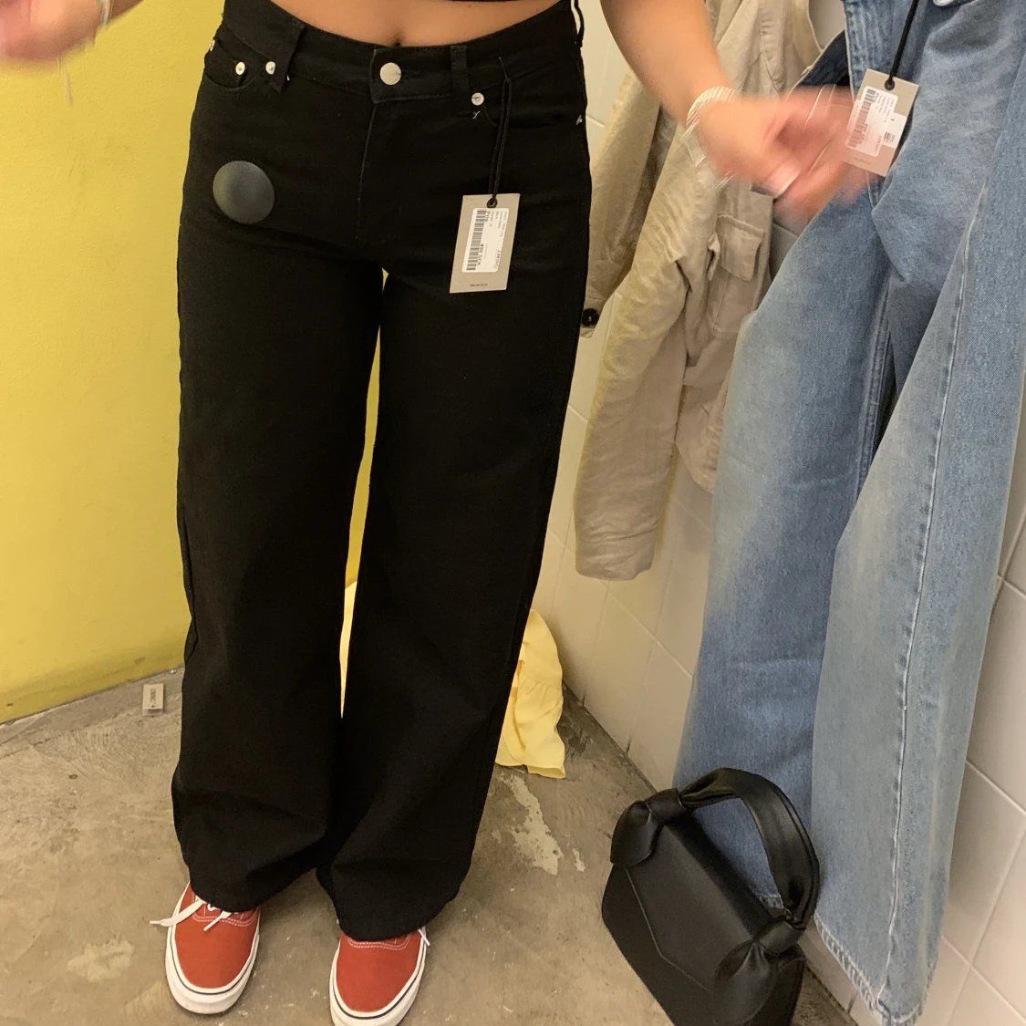 Svarta jeans från junkyard med medelhög midja! De är väl använda men i bra skick. Storlek 32, perfekt längd för mig som är 165cm🌟