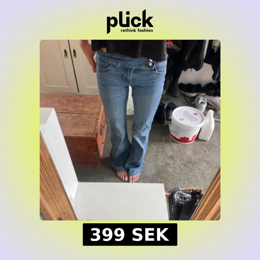 Säljer dessa as snygga lågmidjade bootcut jeans!! De är omsydda till low waist men är inget som syns. Skriv för frågor eller fler bilder💗💗