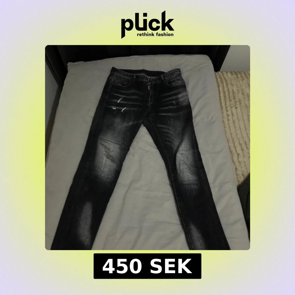 Snygga svarta jeans med slitningar och blekta detaljer, Perfekta för dig som gillar streetstyle och vill sticka ut lite extra.