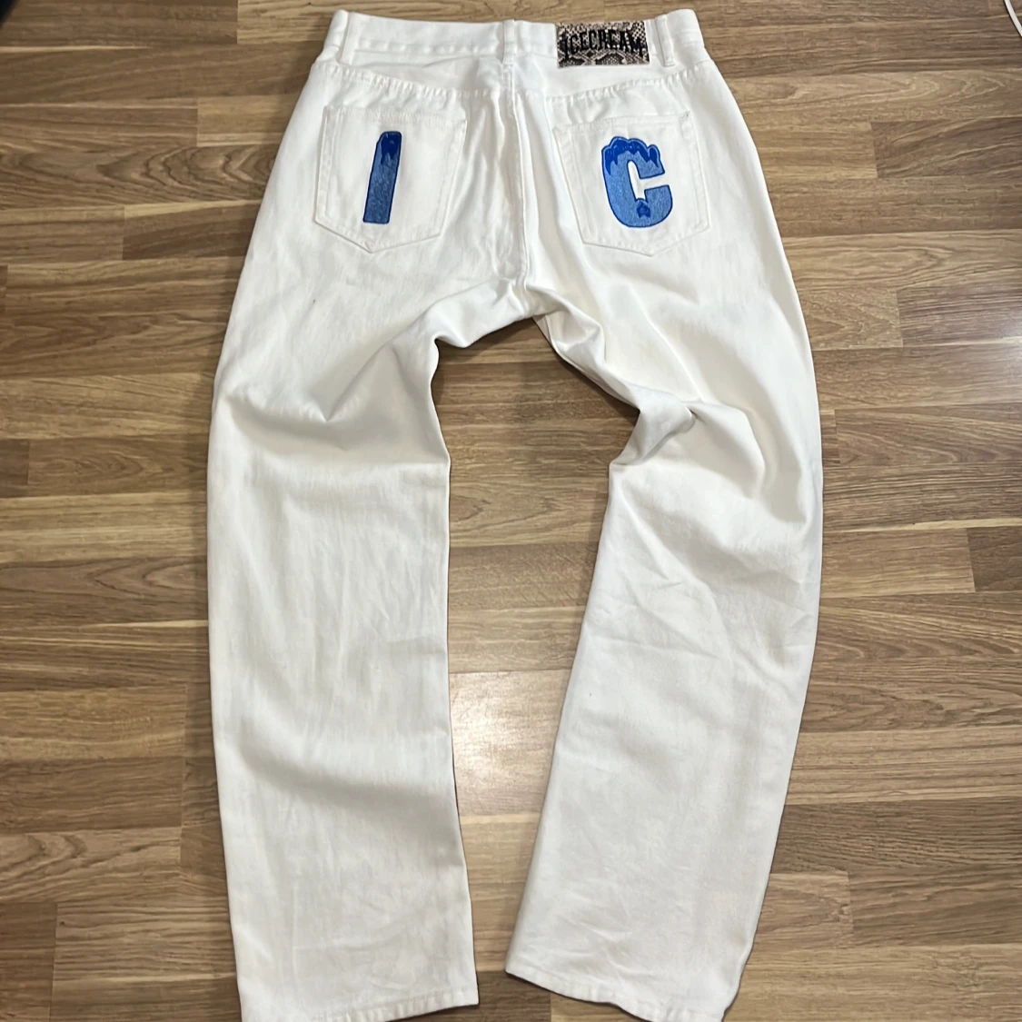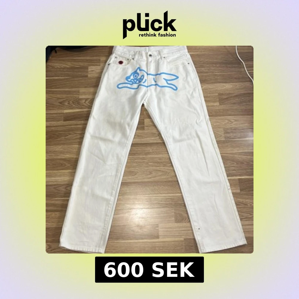 Vita BBC ice cream jeans med blå running dog print använda kanske 2-3 gånger. Kvitto kan letas upp om det önskas
