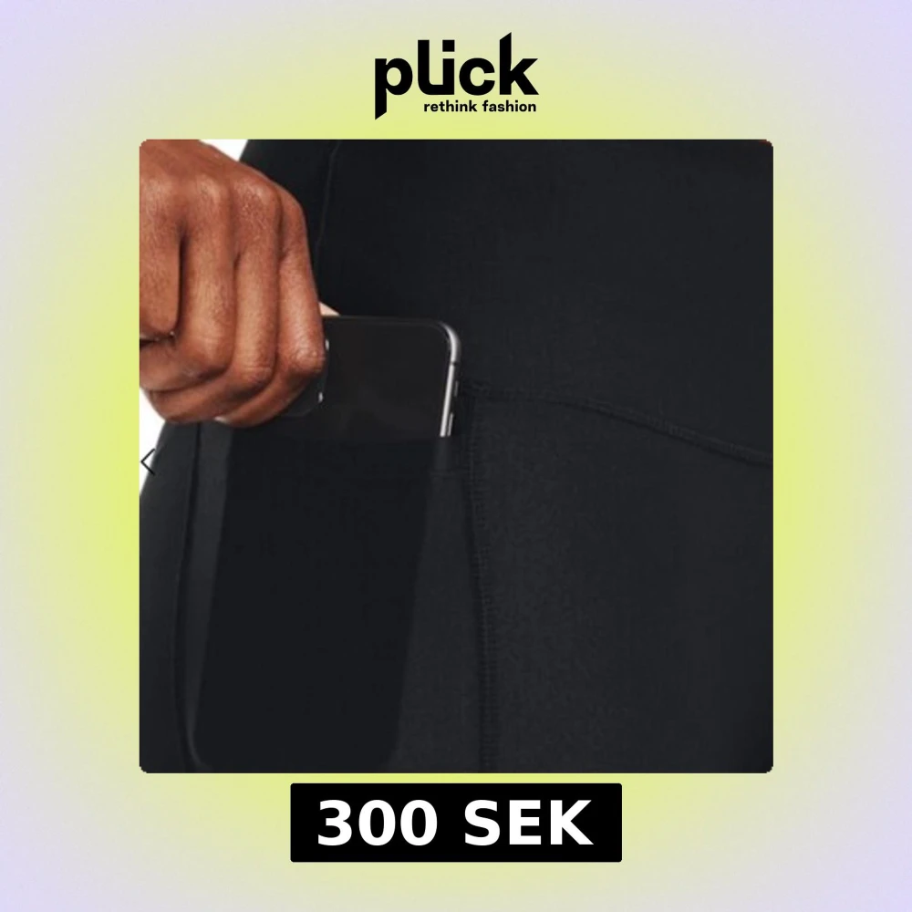 Snygga svarta leggings från Under Armour med hög midja och praktisk ficka för mobilen. Perfekta för träning med en tight passform som ger stöd och komfort. Helt ny
