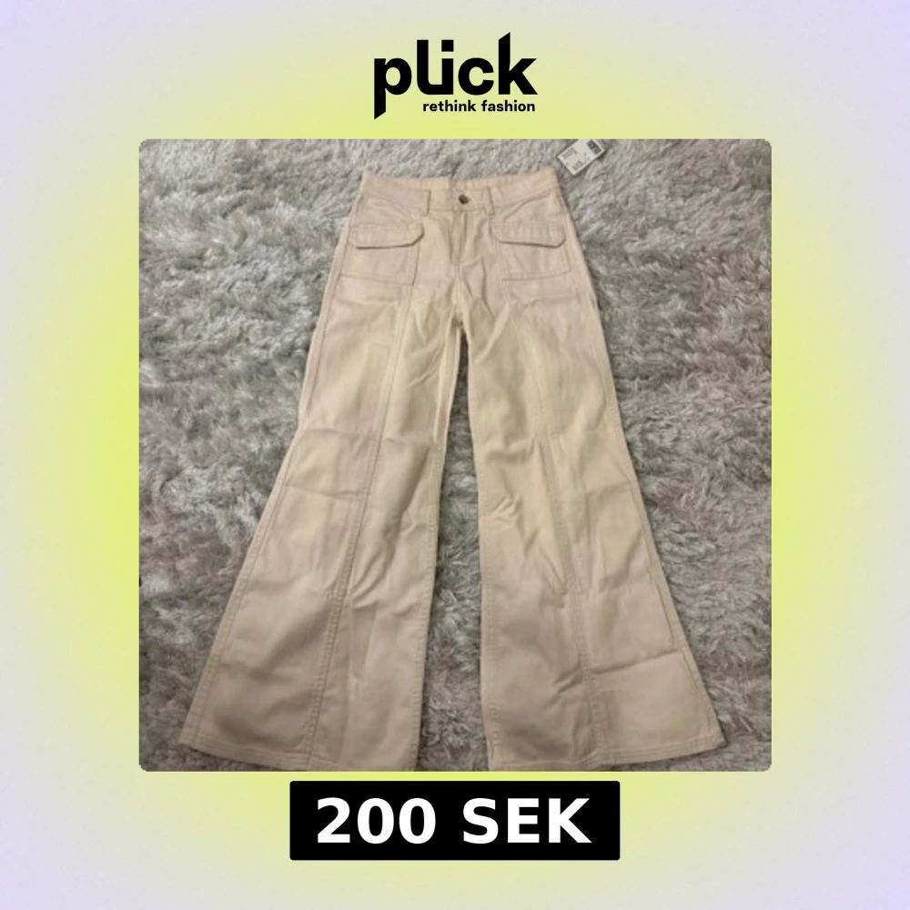 Snygga beige byxor från H&M Divided med vida ben och hög midja. Byxorna har framfickor med lock och knappstängning. Perfekta för en trendig look.