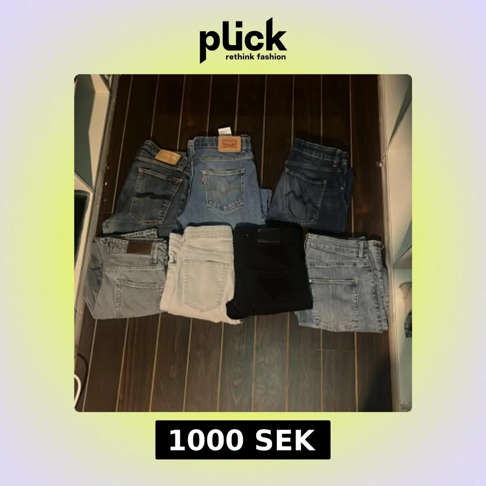 Säljer ett gäng snygga jeans i olika tvättar och färger från Levi's, Nudie Jeans och Cheap Monday. Här finns både ljusblå, mörkblå, grå och svarta jeans i klassisk femficksmodell. Perfekta för dig som vill ha flera stilar att variera mellan.