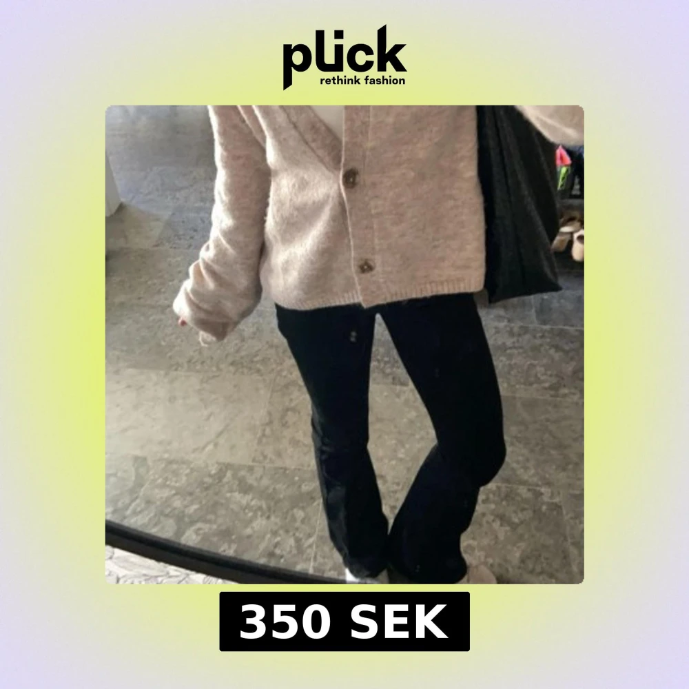 Säljer ett par svarta bootcut byxor med snygg passform. Dem har en låg midja och är lite slitna längst nere i benen💗💗jag är 164 och de passar perfekt i längden