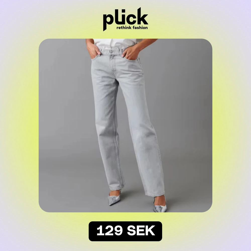 Säljer ett par snygga grå jeans i straight fit. De är lowwaist💕 De är i petite modell!